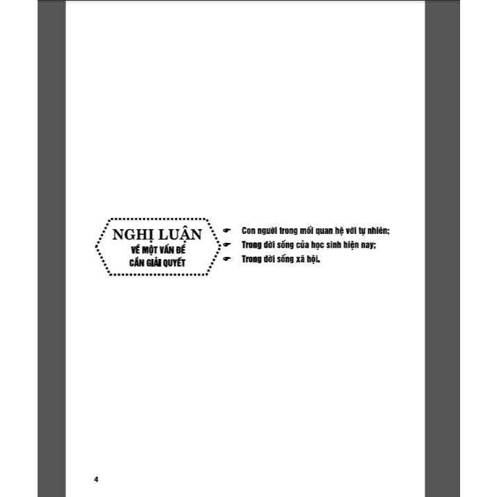 vào lớp 10 THPT sắp tới. Với nội dung được biên soạn theo định hướng phát triển năng lực và phẩm chất của Chương trình GDPT mới, cuốn sách còn có thể giúp các em hệ thống hóa kiến thức các dạng bài nghị luận xã hội, cải thiện khả năng tư duy và lập luận logic.