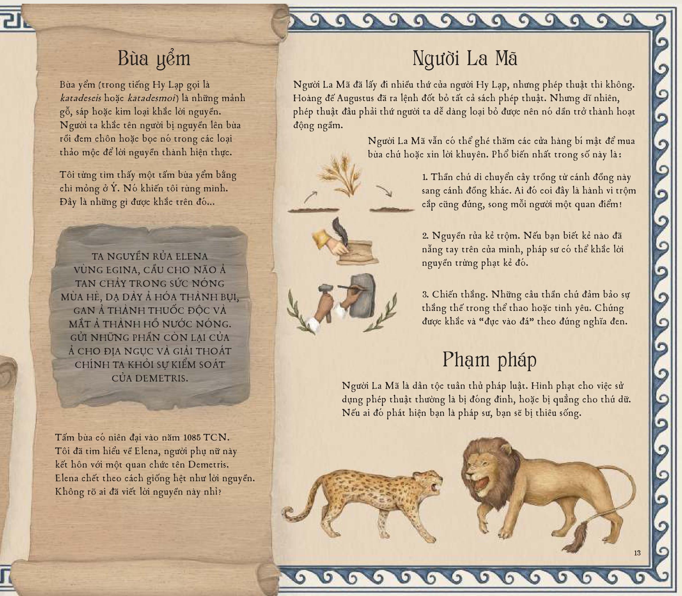 Cẩm Nang Về Phép Thuật Bạn đọc thân mến, Bạn đã sẵn sàng cho chuyến hành trình có một không hai chưa? Vậy hãy lật giở cuốn sách này ngay thôi nào! Phép thuật không chỉ gồm niệm chú và vung đũa làm phép. Nếu tinh ý quan sát, bạn sẽ thấy phép thuật hiển hiện ngay quanh chúng ta. Được biên soạn bởi nhà thực vật học – Giáo sư Conrad Gessner, cuốn sách tuyệt đẹp này là cẩm nang hướng dẫn bạn tìm hiểu khái quát về mọi phép thuật trên thế giới. Cùng tìm hiểu cách người cổ xưa nhận tín hiệu và lời hồi đáp từ mặt trời, mặt trăng, bài tarot hay lựa chọn gỗ cây thiêng phù hợp để làm đũa phép ứng nhất với cá tính của bạn. Dù bạn là phù thủy, pháp sư đầy quyền năng hay mới chỉ chập chững trên hành trình khám phá phép thuật, hãy cứ để nó tự nhiên dẫn lối bạn, bắt đầu từ bao kiến thức diệu kì trong cuốn sách này.