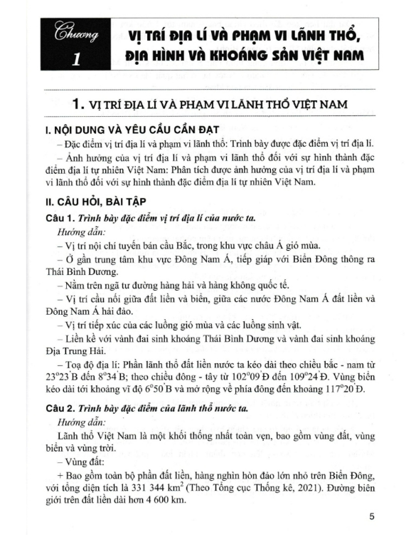 Sách được biên soạn theo Chương trình Giáo dục phổ thông môn Lịch sử và Địa lí (cấp Trung học cơ sở) (Ban hành kèm theo Thông tư số 32/2018/TT-BGD ĐT ngày 26 tháng 12 năm 2018 của Bộ trưởng Bộ Giáo dục và Đào tạo). Nội dung sách gồm các chương: Vị trí địa lí và phạm vi lãnh thổ, địa hình và khoáng sản Việt Nam; Khí hậu và thuỷ văn Việt Nam; Thổ nhưỡng và sinh vật Việt Nam; Biển đảo Việt Nam.
