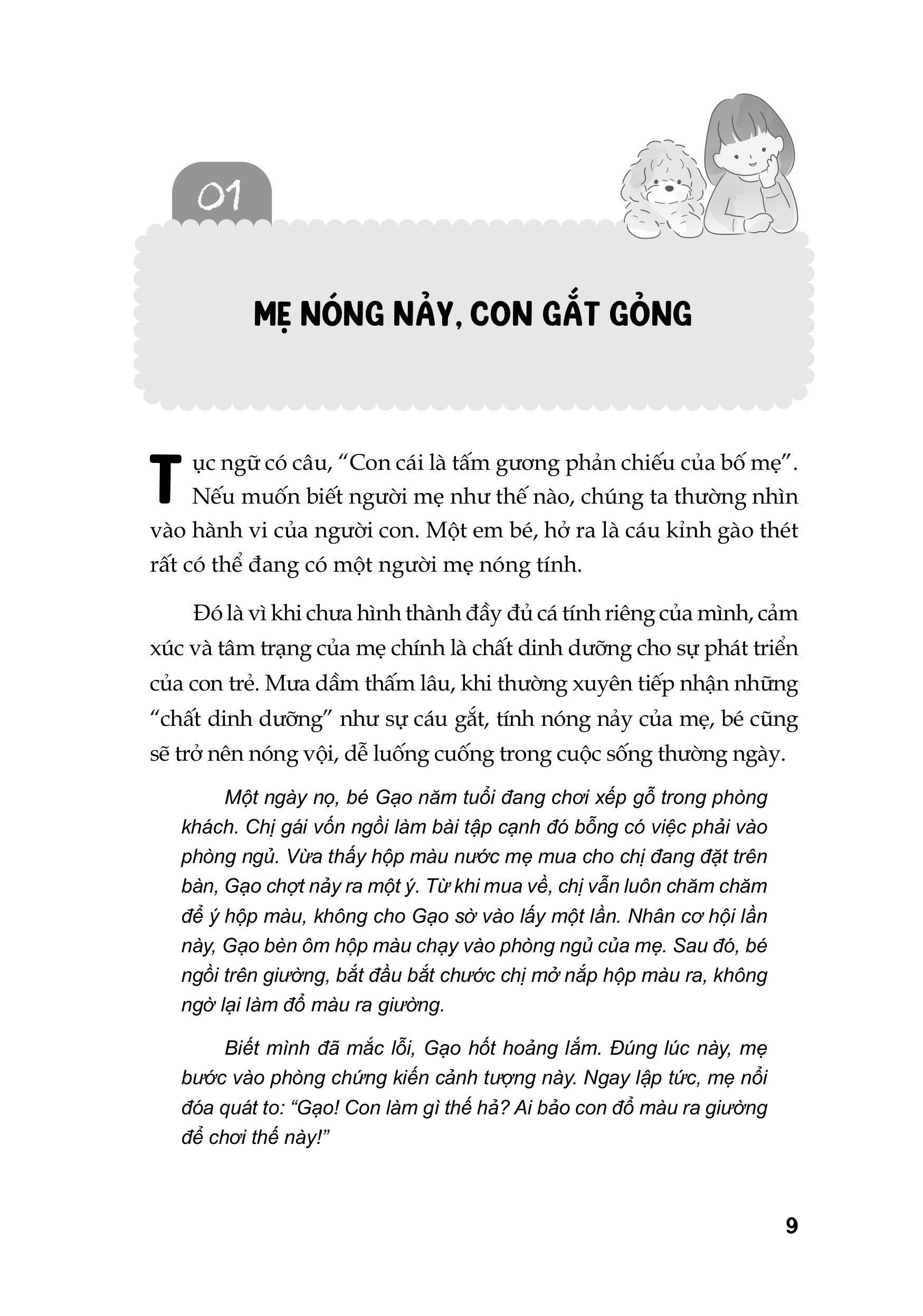 Sự tức giận ở trẻ em là một thử thách đầy mệt mỏi. Cơn giận dữ của một đứa trẻ có thể mang đến cho cha mẹ nhiều giây phút căng thẳng và nặng nề. Là cha mẹ, chúng ta lo lắng và đôi khi trong lúc tuyệt vọng, chúng ta nói cũng nhưlàm những điều mà trước khi có con chúng ta không bao giờ tưởng tượng được ra... Việc phải đối mặt với một đứa trẻ giận dữ là một thử thách to lớn Xử lí sự tức giận là việc cực kì khó. Trẻ con tức giận rất khó giải quyết. Thật mệt mỏi khi phải đối phó với những cơn phẫn nộ triền miên, nhất là khi cha mẹ bị quá tải với hàng đống việc cần hoàn thành mỗi ngày. Khi một đứa trẻ tức giận và hung hăng, cha mẹ cũng có thể thấy lo lắng về tương lai của đứa trẻ đó. Một điều khiến cho vấn đề trở nên phức tạp hơn là sự tức giận không bao giờ xuất hiện đơn lẻ. Một đứa trẻ có thể luân phiên giữa tức giận và buồn bã, giữa tức giận và xấu hổ. Thậm chí có thể vừa tức giận vừa vui sướng. Nhưng phản ứng cảm xúc của cha mẹ vẫn xảy ra bất chấp thực tế là đằng sau sự tức giận, trẻ có thể đang bị tổn thương. Khi bị dồn đến giới hạn chịu đựng, chúng ta phản ứng lại sự tức giận của con bằng cách trở nên tức giận. Sau đó, có thể chúng ta sẽ chỉ trích, chế nhạo, xa lánh con hoặc buông xuôi. Sự tức giận của con cái cũng có thể khiến chúng ta tuyệt vọng. Giải pháp là biết nhiều hơn về cơ chế của sự tức giận Đằng sau hành vi hung hãn thường ẩn giấu cảm giác dễ tổn thương. Một đứa trẻ giận dữ thường là một đứa trẻ đang bối rối, xấu hổ, thất vọng haojwc cảm thấy mình nhỏ bé, ngu ngốc hay kém cỏi. Sự tức giận của trẻ có thể là biểu hiện của nỗi buồn, sự cô đơn hoặc sợ hãi. Là người lớn, bạn cần cảm nhận thức được cơn giận dữ cực đoan của trẻ có thể gợi lên trong bạn cảm xúc gì, và bạn cần được hỗ trợ để biết cách kiểm soát cảm xúc của chính mình - những cảm xúc có thể ngăn cản bạn thực hiện nhiệm vụ quan trọng là trở thành điểm tựa tinh thần cho con. Cuốn sách này cung cấp cho bạn tất cả những gì cần biết về sự tức giận và hung hăng của con mình Cuốn sáchTrẻ Cáu Cha Mẹ Gắtsẽ làm sáng tỏ sự tức giận, nhắc nhở mọi người lí do tại sao nó lại là một cảm xúc quan trọng và cần thiết. Sự tức giận có một vai trò xã hội rất quan trọng giúp chúng ta tạo ta các ranh giới và bảo vệ chính mình. Cuốn sách này cung cấp cho bạn tất cả những gì cần biết về sự tức giận và hung hăng của con mình. Trọng tâm của cuốn sách không phải là cho con bạn bất cứ thứ gì chúng muốn, cũng không phải là dung túng cho những hành vi hung hãn. Mà sẽ chỉ cho bạn một cách tiếp cận mới để duy trì ranh giới lành mạnh có thể giúp bạn thiết lập các giới hạn một cách hiệu quả, đồng thời hiểu được cảm xúc của con mình. Bạn cần nhớ rằng, việc hiểu được cảm xúc của bản thân và con cái là chìa khóa giúp bạn thành công khi thiết lập các giới hạn.