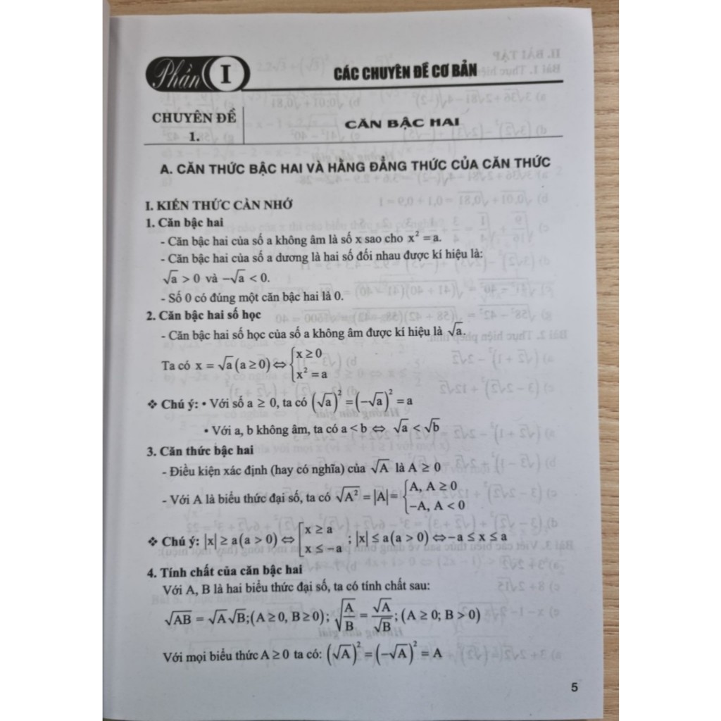 1. Nội dung sách tổng ôn toán học lớp 9 Tập 1 gồm 4 chương: - Chương 1: Căn bậc hai, căn bậc ba. - Chương 2: Hàm số bậc nhất. - Chương 3: Hệ