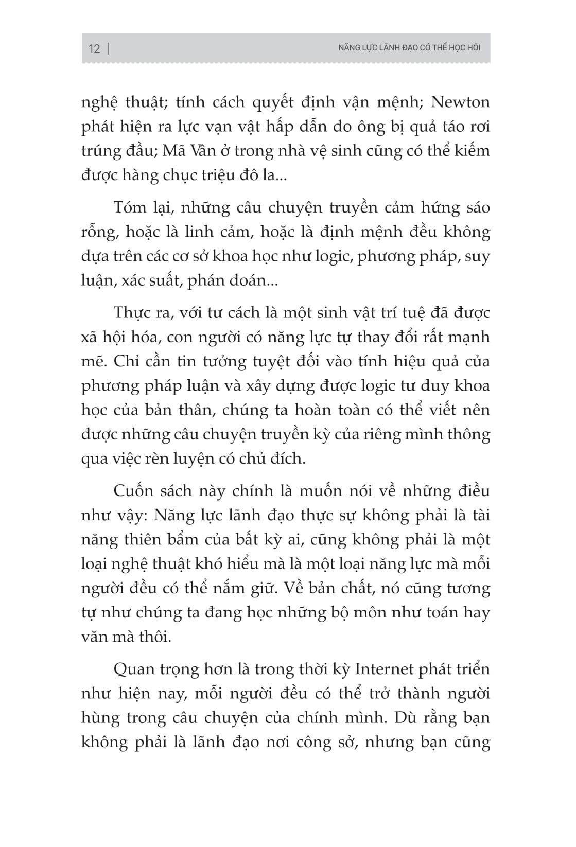Năng lực lãnh đạo thực sự không phải là tài năng bẩm sinh của bất kỳ ai, cũng không phải là một loại nghệ thuật khó hiểu mà là một loại năng lực mà mỗi người đều có thể nắm giữ. Về bản chất, nó tương tự như chúng ta đang học những bộ môn như toán hay văn mà thôi.