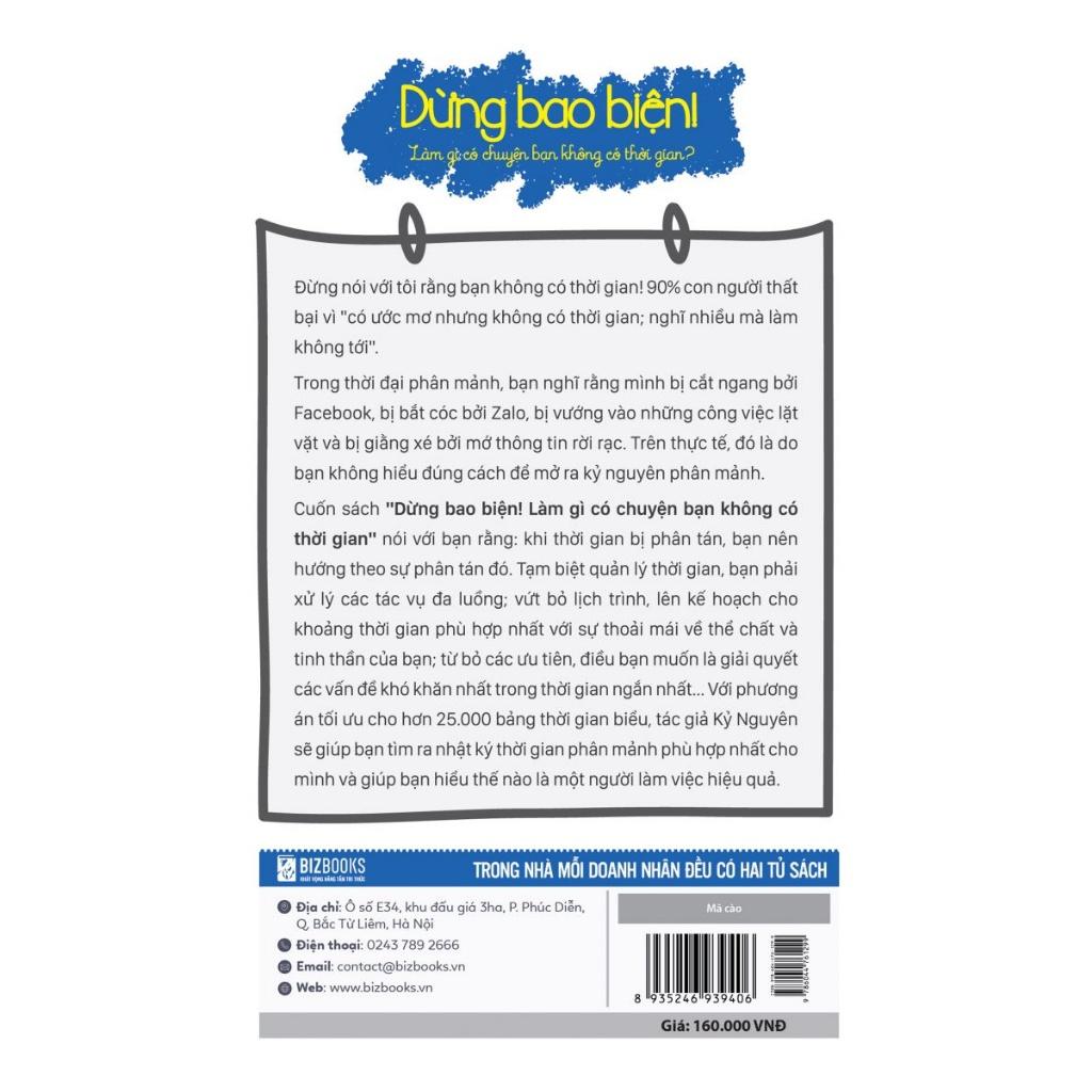 Thông tin chi tiết cuốn sách Sách Dừng Bao Biện! Làm Gì Có Chuyện Bạn Không Có Thời Gian