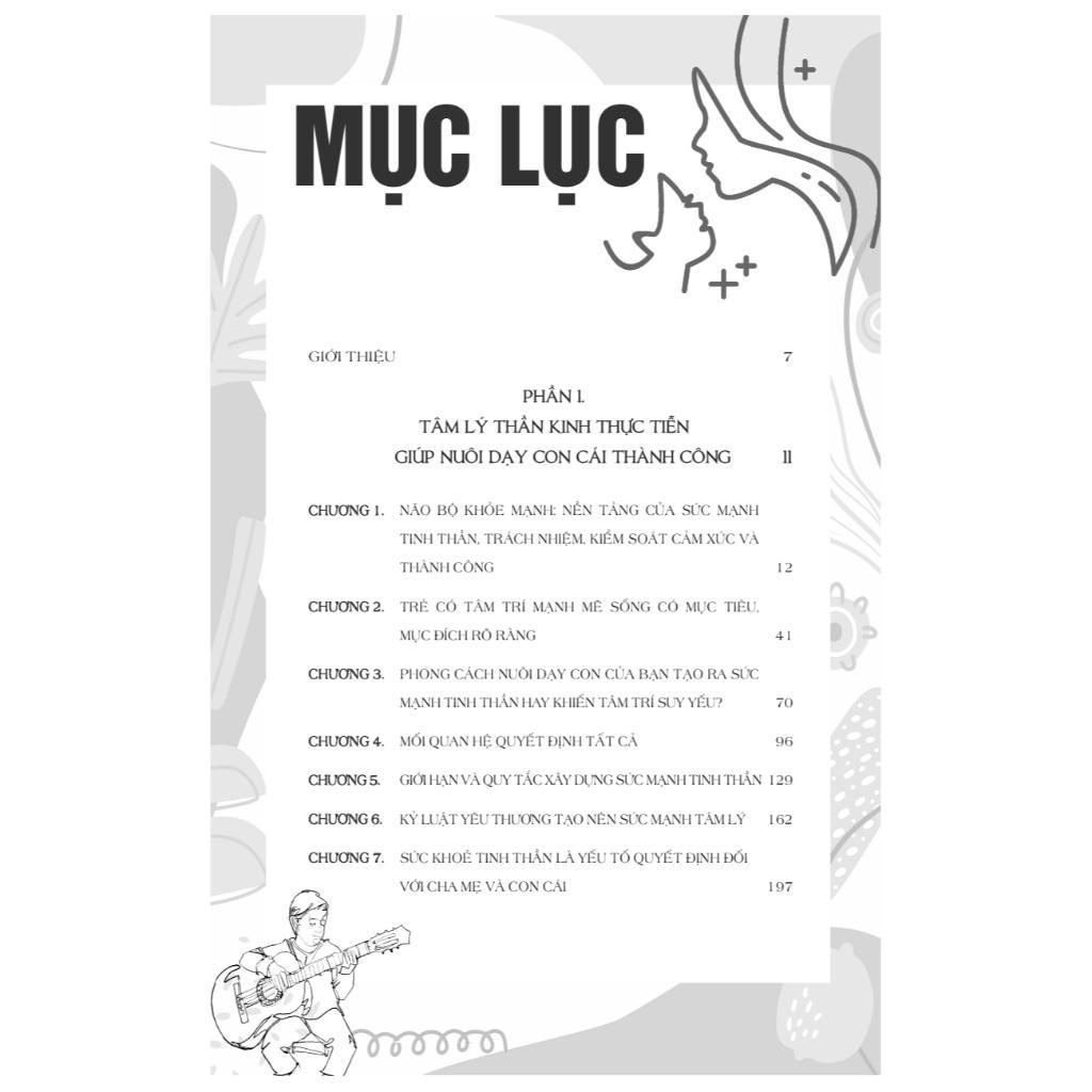 • Phần 1: Trình bày nền tảng tâm lý thần kinh trong nuôi dạy trẻ, giải thích cách não bộ phát triển, ảnh hưởng của môi trường và hành vi nuôi dạy đến sức khỏe tâm thần của trẻ. Phần này giúp cha mẹ hiểu được mối liên hệ giữa cảm xúc, tư duy, thói quen và hành vi – từ đó xây dựng nền tảng vững chắc về sự tự tin, trách nhiệm và khả năng quản lý cảm xúc cho trẻ.