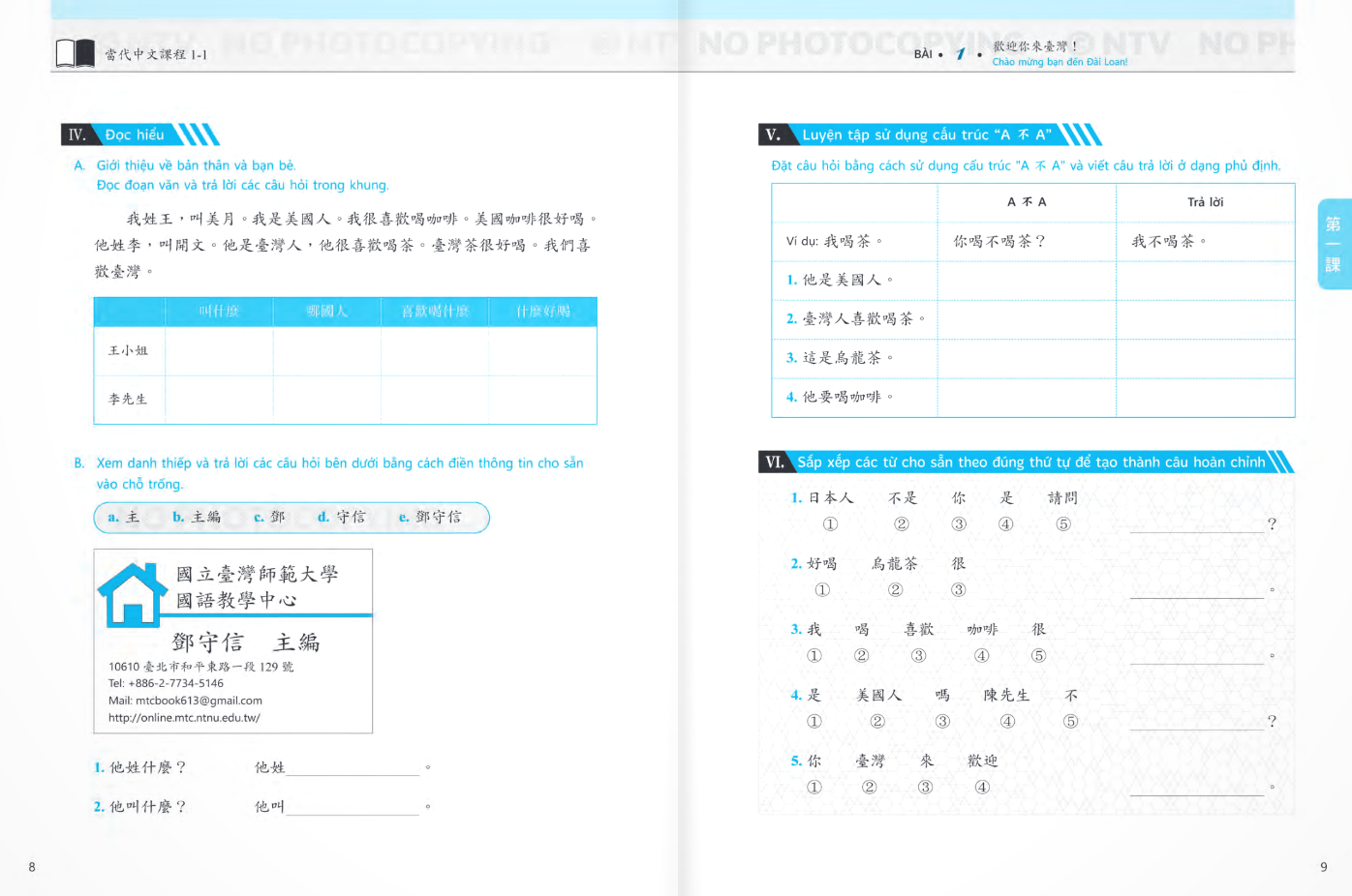 Giáo Trình Tiếng Hoa Đương Đại - Sách Bài Tập + Sách Tập Viết 1-1 Bộ sách dành cho học sinh đến Đài Loan học tiếng Hoa và cũng là giáo trình phù hợp với