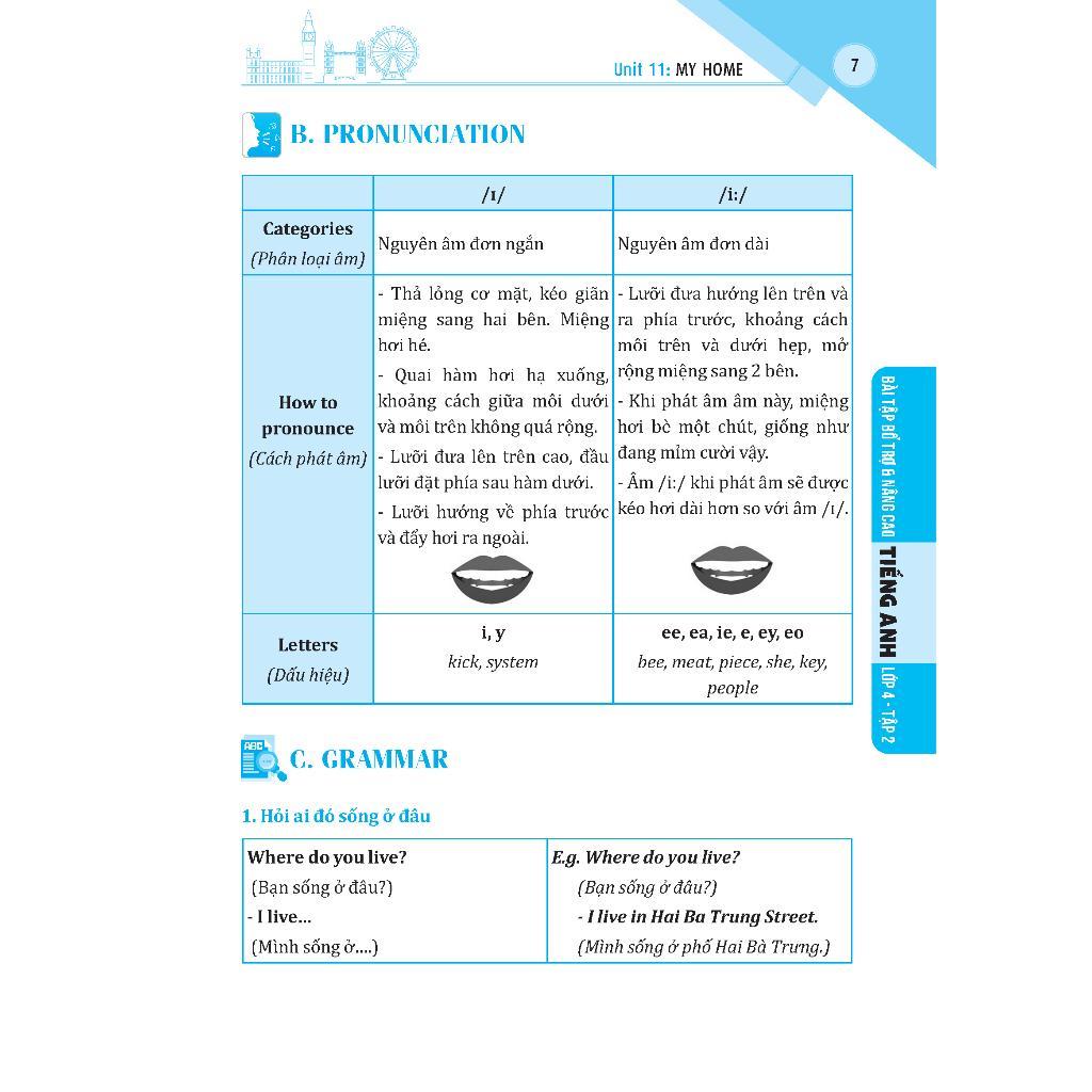 Bài tập bổ trợ và nâng cao Tiếng Anh được chia thành các đơn vị bài học bám sát chương trình mới nhất của Bộ Giáo dục và Đào tạo. Thông qua hệ thống các bài học với kiến thức bổ trợ nâng cao, cuốn sách hướng tới phát triển toàn diện kỹ năng ngôn ngữ cho các em học sinh. Đây không chỉ là tài liệu bổ trợ giúp các em củng cố kiến thức cơ bản sau các bài học trên lớp mà còn là công cụ hỗ trợ các em không ngừng mở rộng và nâng cao kiến thức.