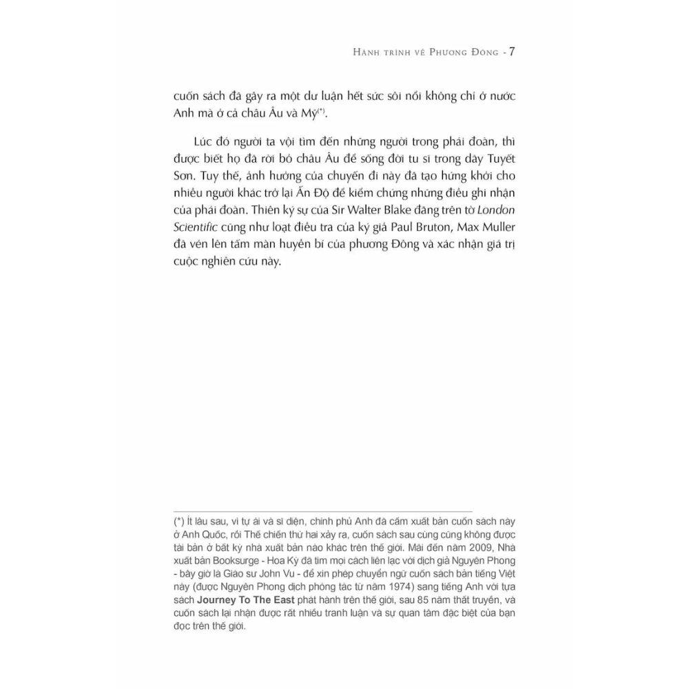 Hành Trình Về Phương Đông kể về những trải nghiệm của một đoàn khoa học gồm các chuyên gia hàng đầu của Hội Khoa Học Hoàng Gia Anh được cử sang Ấn Độ nghiên cứu về huyền học và những khả năng siêu nhiên của con người. Suốt hai năm trời rong ruổi khắp các đền chùa Ấn Độ, diện kiến nhiều pháp thuật, nhiều cảnh mê tín dị đoan, thậm chí lừa đào… của nhiều pháp sư, đạo sĩ… họ được tiếp xúc với những vị chân tu thông thái sống ẩn dật ở thị trấn hay trên rặng Tuyết Sơn. Nhờ thế, họ được chứng kiến, trải nghiệm, hiểu biết sâu sắc về các khoa học cổ xức và bí truyền của văn hóa Ấn Độ như yoga, thiền định, thuật chiêm tinh, các phép dưỡng sinh và chữa bệnh, những kiến thức về nhân duyên, nghiệp báo, luật nhân quả, cõi sống và cõi chết…