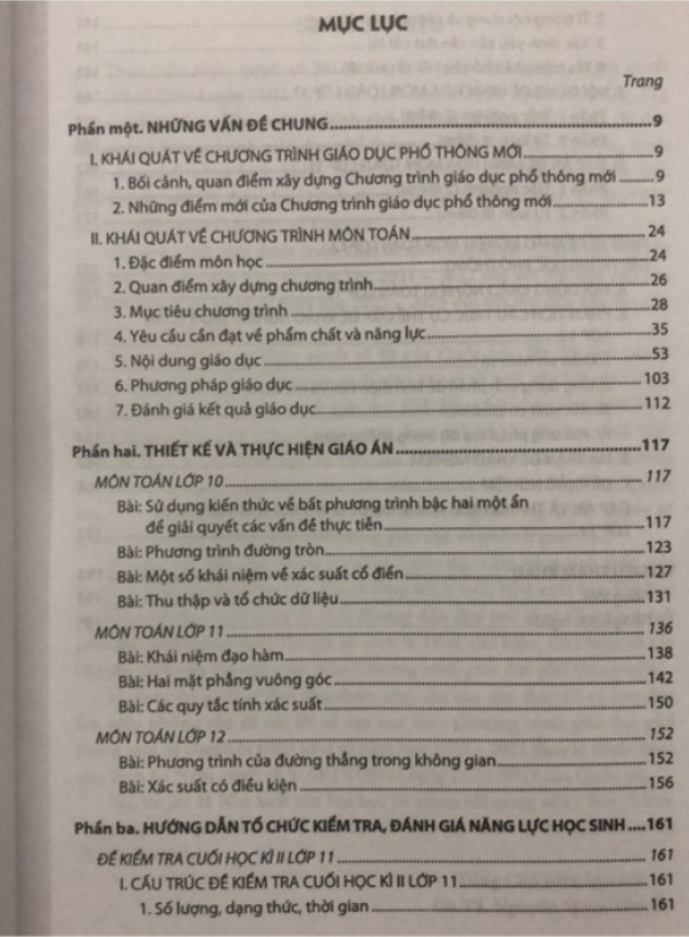 Nội dung gồm có: Phần một. Những vấn đề chung I. Khái quát về chương trình giáo dục phổ thông mới II. Khái quát về chương trình môn toán 1. Đặc điểm môn học 2. Quan điểm xây dựng chương trình 3. Mục tiêu chương trình 4. Yêu cầu cần đạt về phẩm chất và năng lực 5. Nội dung giáo dục 6. Phương pháp giáo dục 7. Đánh giá kết quả giáo dục Phần hai. Thiết kế và thực hiện dạo án Môn Toán lớp 10 Môn Toán lớp 11 Môn Toán lớp 12 Phần ba. Hướng dẫn tổ chức kiểm tra, đánh giá năng lực học sinh Đề kiểm tra cuối học kỳ hai lớp 11 Thiết kế đề khảo nghiệm môn toán lớp 12 cấp Trung học phổ thông