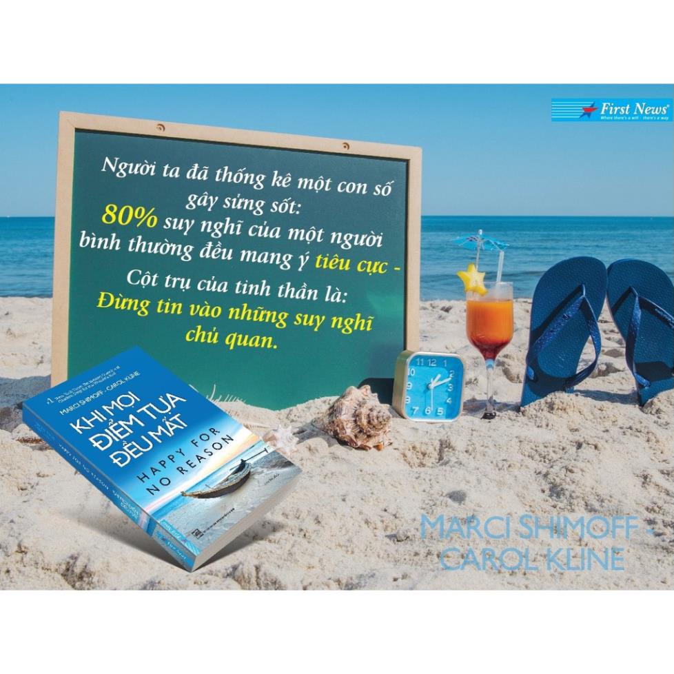 Mô tả sản phẩm: KHI MỌI ĐIỂM TỰA ĐỀU MẤT Với Happy for No Reason – Khi mọi điểm tựa đều mất, tác giả Marci Shimoff đã có một cuộc cách mạng về quan niệm hạnh phúc. Trong khi phần lớn những quyển sách ở thể loại này hướng vào việc giúp con người tìm kiếm hạnh phúc từ những yếu tố bên ngoài thì Happy for No Reason lại hướng vào những yếu tố nội tâm. Nhờ vậy, bạn sẽ tìm thấy những phương thức tuy đơn giản nhưng lại rất hữu hiệu giúp bạn trải nghiệm một cảm xúc mới – hạnh phúc tự thân – bất kể mọi tác động tiêu cực từ bên ngoài. Quyển sách sẽ gửi đến bạn nền tảng cơ bản nhất, giúp bạn duy trì một trạng thái hạnh phúc bền vững và trọn vẹn. Thông qua một nghiên cứu được trình bày trong cuốn sách chúng ta nhận ra rằng: 50% giới hạn hạnh phúc được quy định do kiểu gen, phần còn lại là do chúng ta tích lũy. Và trong 50% còn lại chỉ 10% trong số đó là phụ thuộc vào những yếu tố như: sự giàu có, tình trạng hôn nhân và công việc; còn 40% cuối cùng là kết quả của những suy nghĩ, cảm giác, ngôn từ và hành động của con người. Đọc cuốn sách để thấy rằng hạnh phúc là điều vô cùng giản dị và gần gũi bởi vì nó ở ngay bên trong mỗi chúng ta, ta không đi tìm hoặc nắm bắt hạnh phúc mà chúng ta rèn luyện để có được hạnh phúc. Vì vậy chúng ta hãy ngưng việc theo đuổi một điều không có kết quả và tốt hơn là nên bắt đầu rèn luyện để có được hạnh phúc bằng cách hình thành và trau dồi những thói quen. Những trải nghiệm có thật trong cuộc sống cũng như những nghiên cứu của tác giả đã ảnh hưởng đến suy nghĩ của tác giả về hạnh phúc. Theo đó, có bảy bước rất đơn giản giúp bạn trải nghiệm niềm hạnh phúc đích thực. Với hình ảnh Ngôi nhà ẩn dụ cho cuộc sống con người, tác giả đã mượn hình ảnh này làm biểu tượng cho ý tưởng của mình: bảy bước để xây dựng “ngôi nhà hạnh phúc”. Bảy bước này có liên quan đến bảy đối tượng mà bạn cần quan tâm trong cuộc sống của mình: sức mạnh bản thân, tinh thần, con tim, cơ thể, tâm hồn, mục tiêu và con người.