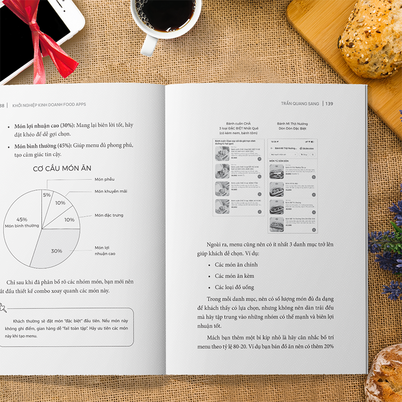Sách - Khởi Nghiệp Kinh Doanh Food Apps - Công Thức Bán Hàng Thành Công Trên Các Nền Tảng Giao Đồ Ăn   Công thức thực chiến giúp x3 doanh thu trên các nền tảng giao đồ ăn (Food Apps) - giúp bạn kiểm soát chi phí, nâng cao giá trị đơn hàng, thúc đẩy tỷ lệ chuyển đổi, mở rộng mô hình kinh doanh… và phát triển bền vững.   Đây là quyển sách đầu tiên tại Việt Nam viết về kinh doanh trên các nền tảng giao đồ ăn như G.r.a.b Food, S.h.o.p.e.e Food... Với 8 chương sách, cuốn sách sẽ mang lại cho bạn: Tư duy đúng để khởi nghiệp trên Food Apps. Cách chọn sản phẩm dễ bán, dễ lời, dễ vận hành dựa trên hành vi người dùng và đặc thù nền tảng. Cách tối ưu gian hàng từ A đến Z: thiết kế menu, định giá món, xử lý đơn hàng, chạy khuyến mãi và đánh giá sao. Công thức x3 doanh thu, giữ vị trí top mà không phụ thuộc khuyến mãi. Cách tăng trải nghiệm khách hàng ở từng điểm chạm như hình ảnh, đóng gói, tốc độ giao, thái độ tài xế… Lộ trình nhân bản mô hình từ quán nhỏ đến chuỗi nhượng quyền. Với giọng văn gần gũi và hóm hỉnh, tác giả sẽ tháo gỡ từng vấn đề của người bán và đưa ra các giải pháp thực tế nhất. VỀ TÁC GIẢ TRẦN QUANG SANG - Chuyên gia Food Apps 12 năm kinh nghiệm trong bán lẻ: F&B, thời trang & ICT Founder & CEO Công ty DIGIFNB Từng phụ trách khu vực Miền Trung & Tây Nguyên cho nền tảng giao đồ ăn hàng đầu Việt Nam với gần 35.000 gian hàng, giúp doanh số Đà Nẵng tăng gấp 7 lần trong vài tháng Tư vấn chiến lược & vận hành Food Apps cho các thương hiệu: Thai Market, R.a.u.M.aM.i.x, Pi Thái, Ulangon, Ba Hưng Bakery, Bánh mì Dòn Dòn, Chạm Đà Lạt… Một trong những người đầu tiên tại Việt Nam xây dựng khóa học chuyên sâu về Food Apps và cam kết hiệu quả cho học viên. Mentor và diễn giả được mời chia sẻ tại nhiều chương trình đào tạo dành cho nhà bán F&B.   TÓM TẮT SÁCH Cuốn sách gồm 8 chương, dẫn dắt người đọc từ tư duy nền tảng đến các kỹ năng thực chiến, giúp bất kỳ ai, kể cả người từng thất bại, có thể khởi nghiệp thành công và làm giàu trên các nền tảng giao đồ ăn như G.r.a.b Food, S.h.o.p.e.e Food…  Chương 1. Từ Người Làm Thuê Đến Người Mở Đường Ngành Food Apps Từng “chạy thị trường” rất thành công cho các hãng công nghệ lớn, tác giả chuyển sang G.r.a.b đúng lúc thị trường bị bỏ ngỏ. Chỉ trong vài tháng, anh mở rộng thị trường khu vực miền Trung lên gấp 5 - 7 lần. Sau đó, anh khởi nghiệp ngành Food Apps với sứ mệnh giúp các chuỗi lớn và quán nhỏ chinh phục “miếng bánh” béo bở này. Chương 2. Sân Chơi Nghìn Tỷ Vẫn Còn Chỗ Cho Người Biết Khai Thác Tác giả phân tích vì sao thị trường Food Apps đang là cơ hội cực lớn cho người khởi nghiệp ít vốn, chỉ rõ ưu và nhược điểm của các mô hình “Food delivery” để bạn có thể chọn được con đường phù hợp nhất với mình. Chương 3. Món Ngon Chưa Đủ, Bạn Cần Tư Duy Đúng Để Thắng Trên Food Apps Phần này giúp bạn gỡ bỏ loạt lầm tưởng chết người, rằng Food Apps chỉ là công cụ phụ, rằng cứ đăng món là có đơn, rằng chạy khuyến mãi càng nhiều càng tốt. Bạn sẽ hiểu vai trò của từng bên trong hệ sinh thái (khách hàng, tài xế, nền tảng, cửa hàng) và lý do vì sao phải làm đúng ngay từ đầu. Chương 4. Chọn Món Không Khéo Bán Lỗ Cả Đời Chương này cung cấp công thức chọn sản phẩm 4 + 4 + 3, trong đó mô hình Ikigai kết hợp thêm các tiêu chí dành riêng cho sản phẩm kinh doanh trên Food Apps cũng như loại trừ 3 điều tối kỵ khi chọn món. Tác giả cũng phân tích ưu nhược các món điển hình, gợi ý các món chỉ yêu cầu số vốn từ 5 triệu và trả lời các câu hỏi phổ biến liên quan đến chủ đề chương này. Chương 5. Tối Ưu Gian Hàng Từ A đến Z Thiết lập một gian hàng Food Apps giống như bày biện mặt tiền một quán ăn thật sự, từ hình ảnh, tên món, mô tả, định giá, thứ tự sắp xếp đến khuyến mãi và quy trình xử lý đơn. Bạn sẽ học cách tối ưu gian hàng theo các nguyên tắc chuẩn chỉnh. Chương 6. Công Thức X3 Doanh Thu Mà Không Cần Đốt Tiền Đúc kết từ trải nghiệm thực tế của hàng ngàn quán, tác giả chia sẻ công thức giúp tăng doanh thu gấp 3 lần bằng nhiều cách như kiểm soát chi phí, nâng cao giá trị đơn hàng, thúc đẩy tỷ lệ chuyển đổi, tận dụng vị trí hiển thị và khuyến mãi thông minh. Bạn cũng sẽ hiểu rõ cách kiểm soát thu chi để biết cách bán có lời thật sự. Chương 7. Thắng Lớn Nhờ Những Điểm Chạm Nhỏ Xíu Khác với bán tại chỗ, khách hàng online không thấy mặt bạn nên mọi trải nghiệm đều đến từ ảnh món, hộp đựng, tốc độ giao, thái độ tài xế... đều phải được chăm chút. Chương này giúp bạn nâng điểm cảm xúc, giữ chân khách cũ và tăng đơn tự nhiên. Chương 8. Hôm Nay Một Quán, Ngày Mai 10 Điểm Bán Từ một gian hàng nhỏ, bạn hoàn toàn có thể phát triển thành chuỗi mini hoặc mô hình nhượng quyền nếu hiểu cách xây dựng hệ thống. Tác giả chỉ r