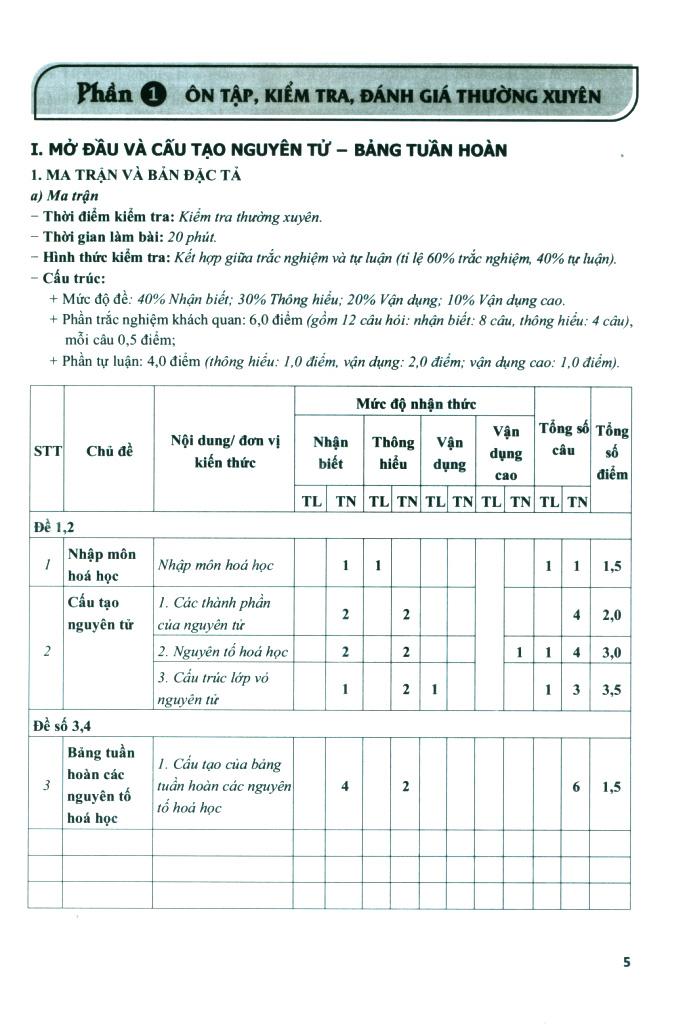 - Bài kiểm tra, đánh giá năng lực đã cập nhật các bài tập hoá học sử dụng các phương pháp nghiên cứu hiện đại như phổ khối lượng, phổ hồng ngoại. Để phục vụ cho việc đổi mới chương trình, sách giáo khoa trong dạy học hoá học ở trường phổ thông nhằm đạt các mục tiêu phát triển nguồn nhân lực phục vụ công nghiệp hoá, hiện đại hoá đất nước, chúng tôi biên soạn cuốn sách Kiểm tra, đánh giá năng lực Hoá học 10 gồm 3 phần theo chương trình và sách giáo khoa 2018. Các tác giả là các giảng viên đại học, các thầy cô giáo viên dạy giỏi hoá học ở phổ thông biên soạn. Nội dung phần thứ nhất là các bài kiểm tra thường xuyên với thời lượng 20 phút mỗi bài, phần thứ hai là các bài kiểm tra, đánh giá định kỳ và phần thứ ba là các bài kiểm tra, đánh giá các chuyên đề học tập của Hoá học 10. Trong đó, cấu trúc mỗi bài kiểm tra bao gồm: