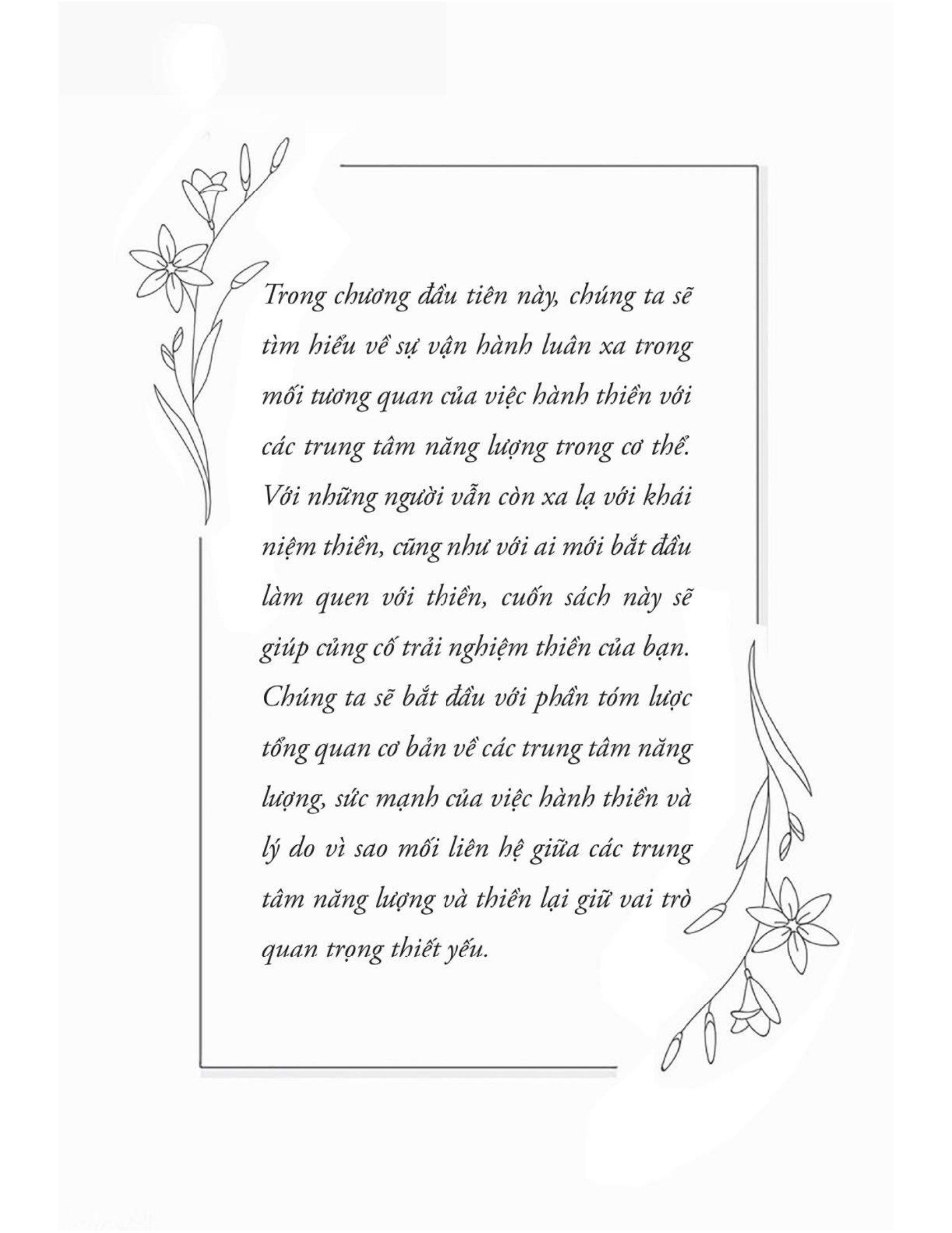 “Một bản hướng dẫn trực quan và chi tiết, phù hợp với cả người mới làm quen với thiền hay những ai đã thực hành thiền định lâu năm. Cuốn sách này mang tới những phương pháp chữa lành bằng năng lượng đơn giản và nhiều hướng dẫn cần thiết để dẫn dắt bạn tới thành công.” - Kara MoraMarco, bác sĩ châm cứu và y học phương Đông.