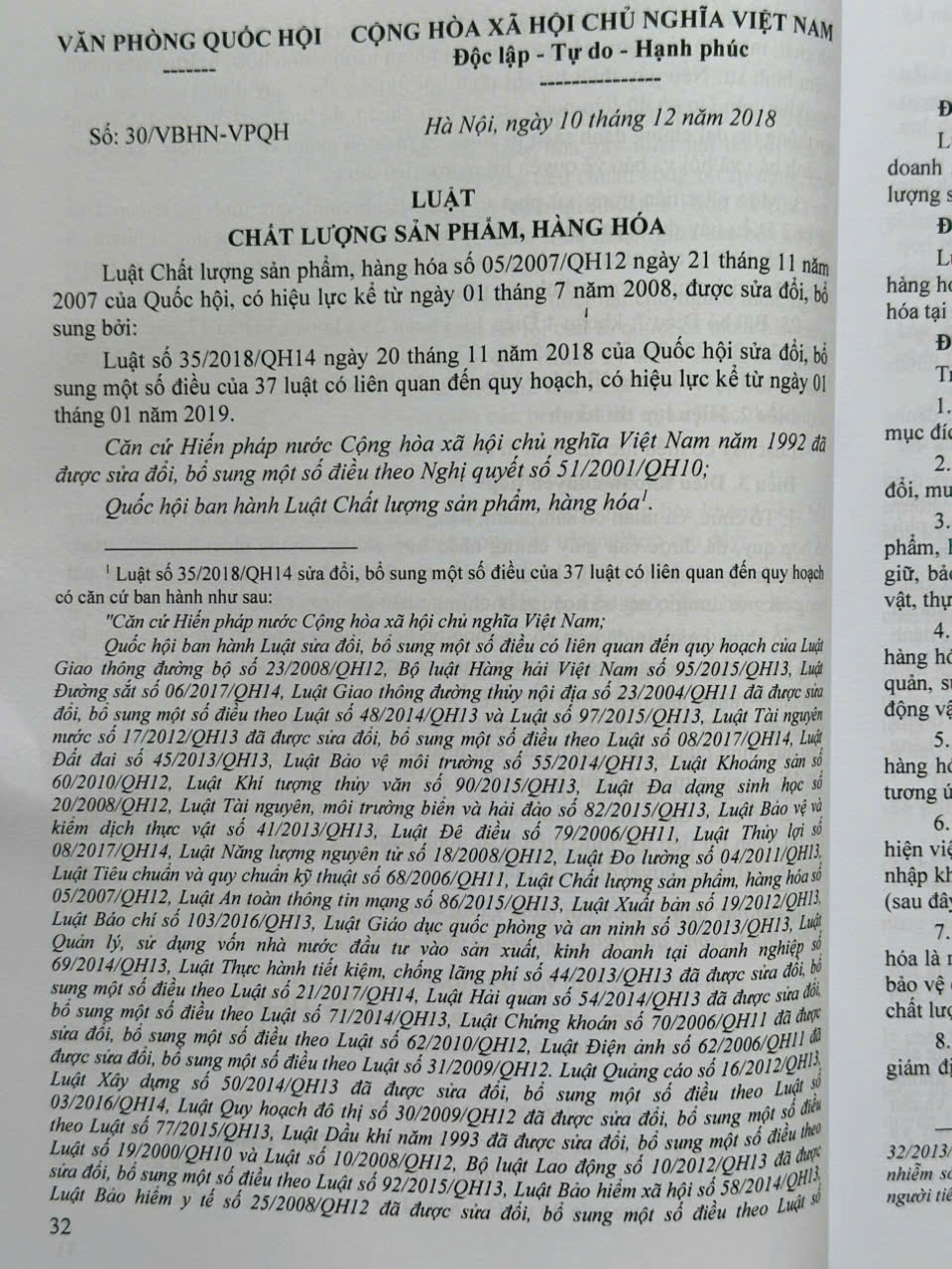 ✨Sách Luật Chất Lượng Sản Phẩm, Hàng Hóa sửa đổi, bổ sung năm 2025 (V2615T)