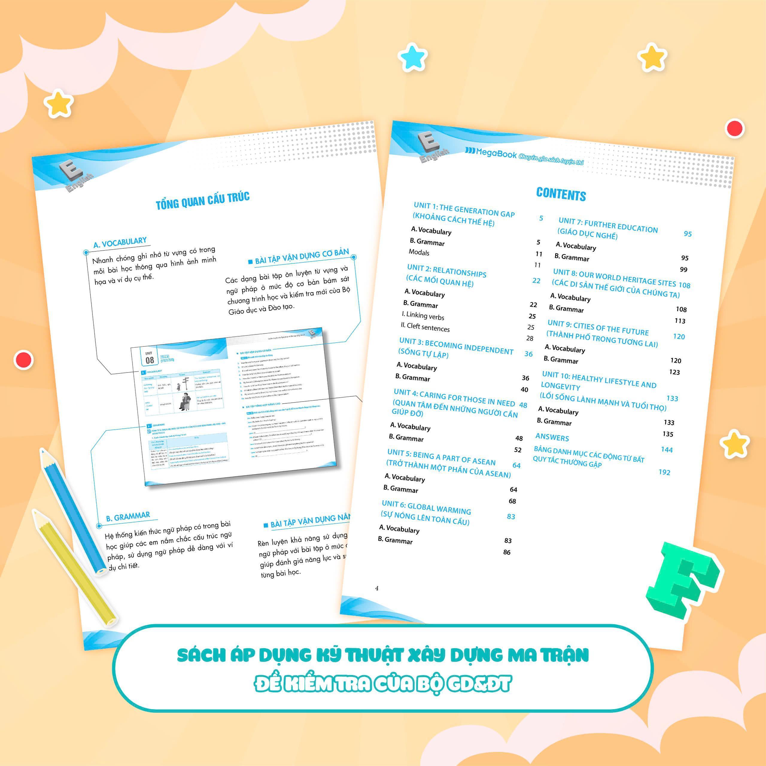 - Nội dung kiến thức bám sát khung chương trình của BGD giúp các em năm vững kiến thức đã học trên lớp cũng như ôn luyện thêm các bài tập nâng cao, hỗ trợ quá trình tự học tiếng Anh hiệu quả.