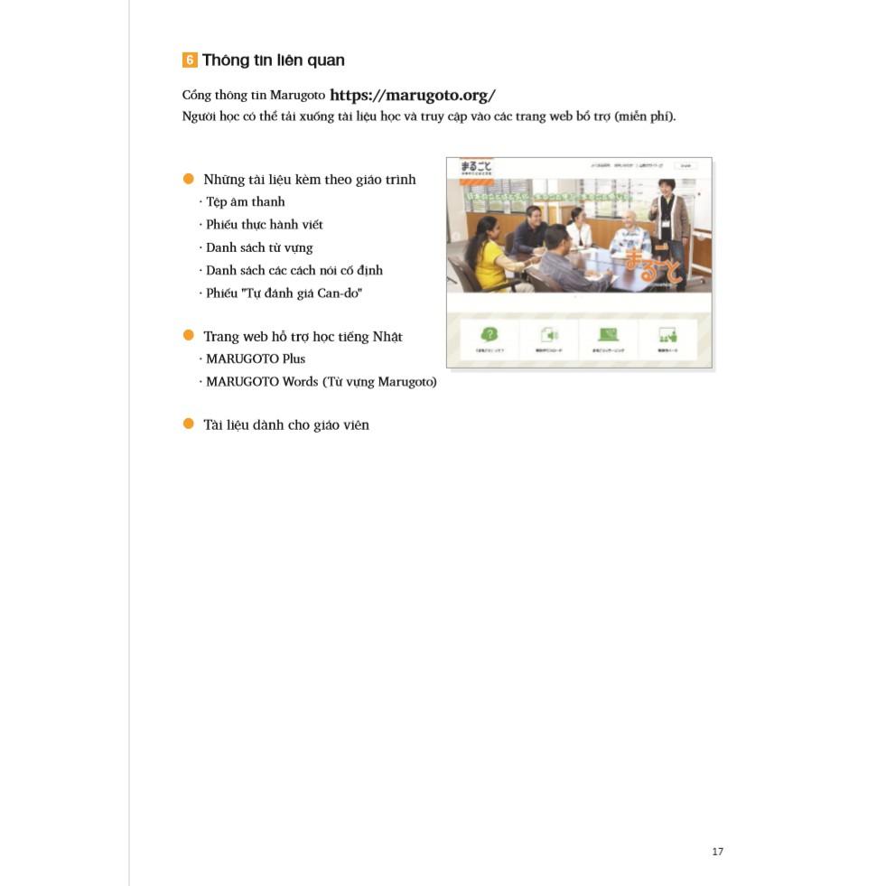Marugoto là một giáo trình công phu và đầy tâm huyết của Nhật Bản với mong muốn phổ cập và nâng cao tiếng Nhật cho người nước ngoài ở khắp thế giới. Giáo trình được triển khai dựa trên Chuẩn Giáo dục tiếng Nhật JF. Tựa đề Marugoto, có nghĩa là “trọn vẹn”, đó cũng chính là thông điệp mà Quỹ Giao lưu Quốc tế Nhật Bản muốn gửi đến quý độc giả: sự kết hợp hài hòa giữa ngôn ngữ và văn hóa. Giáo trình này giới thiệu những tình huống giao tiếp thực tế, giúp người học trải nghiệm nhiều khía cạnh đa dạng của văn hóa Nhật Bản và đặc trưng trong đời sống của người Nhật một cách trọn vẹn.