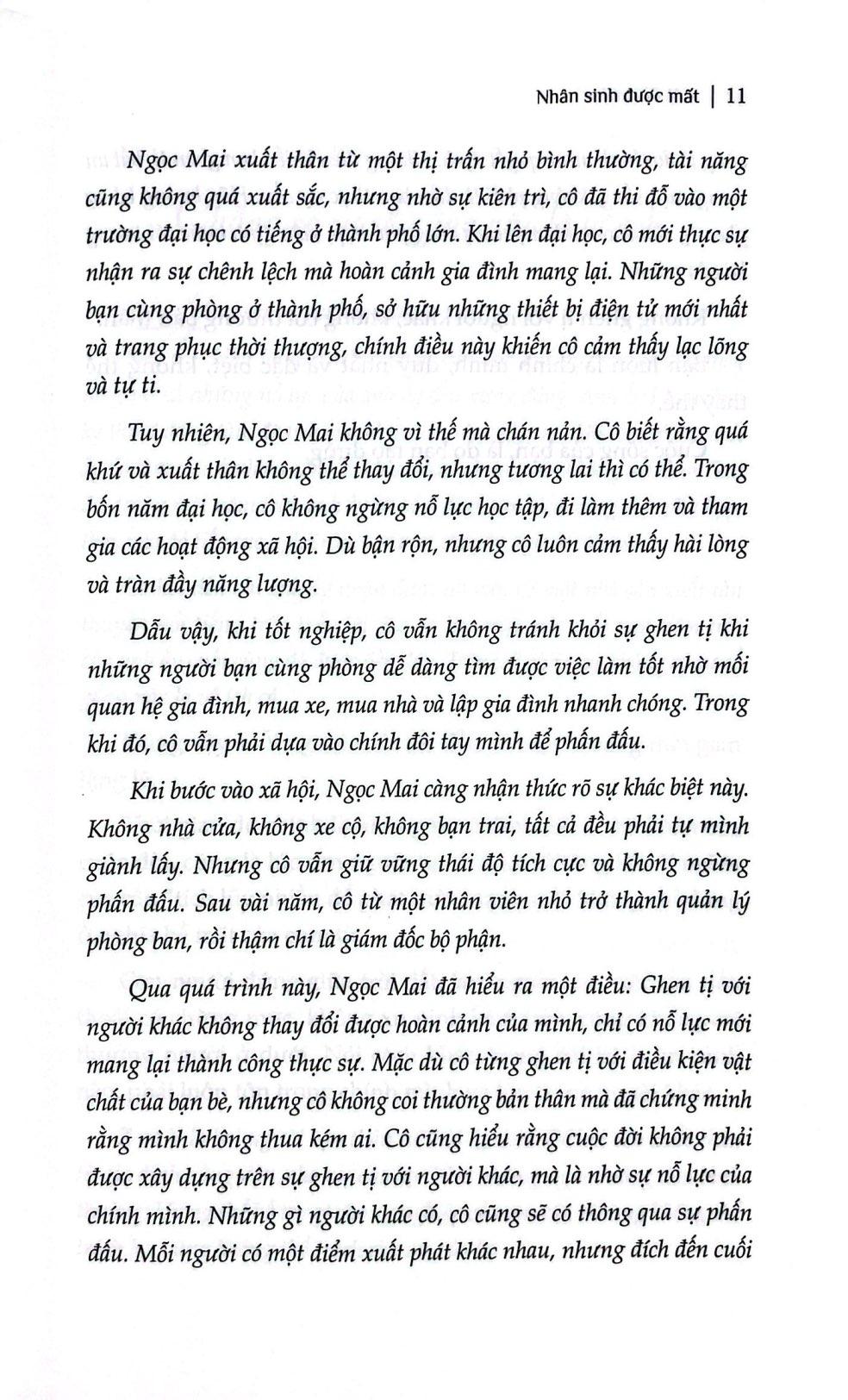 Khi ông trời đóng mất của bạn một cánh cửa này, thì đồng thời cũng sẽ mở ra cho bạn một cánh cửa khác". Điều chúng ta muốn nhấn mạnh là mọi mất mát cuối cùng sẽ quay trở lại theo một cách khác. Hãy nhớ đến định luật bảo toàn khối lượng và cũng nghĩ về những khả năng vô hạn của cuộc sống: mất mát là điều tất yếu và đó cũng là trạng thái bình thường của cuộc sống. Từ khi còn nhỏ cho đến khi lớn lên, chúng ta mất đi thời gian, để đổi lại sự trưởng thành; mất đi sự ngây thơ, để có được sự chín chắn... Con người luôn loay hoay giữa được và mất, luẩn quần không dứt, và vì thế, cả cuộc đời cũng không thể nào thoát khỏi sự tiếc nuối.