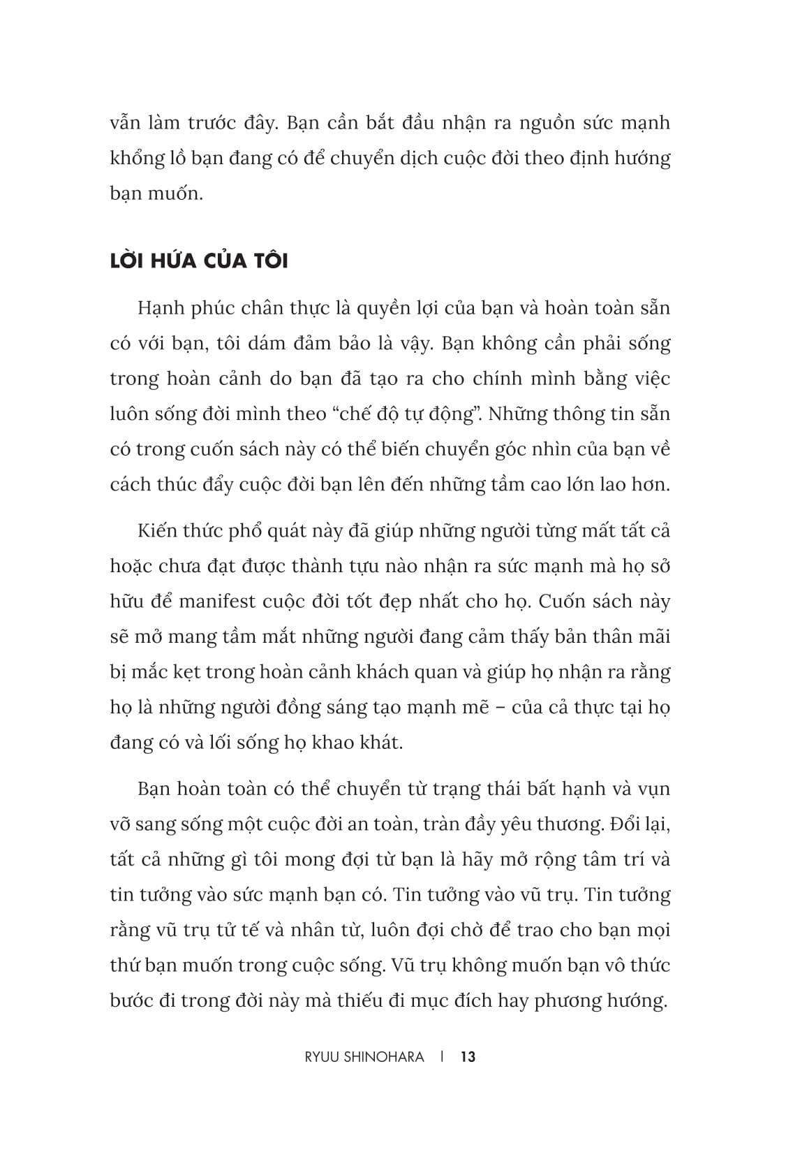 - Thói quen đơn giản hằng ngày giúp tái lập trình niềm tin và đẩy nhanh kết quả. Nghệ thuật manifest toàn diện sẽ mang đến một lộ trình rõ ràng để bạn thay đổi tư duy, sức mạnh tiềm thức và nâng cao tần số rung động của bản thân trong mọi khía cạnh cuộc sống từ đó thay đổi thực tại của chính m.ình.