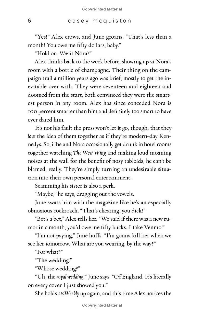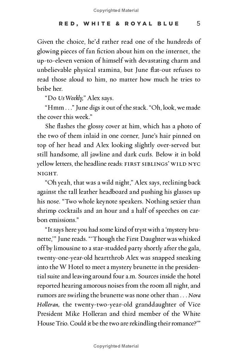 - Instant New York Times and USA Today bestseller * What happens when America's First Son falls in love with the Prince of Wales? Alex Claremont-Diaz is handsome, charismatic, a genius – pure millennial-marketing gold for the White House ever since his mother first became President of the United States. There’s only one problem. When the tabloids get hold of a photo involving an altercation between Alex and Prince Henry, U.S./British relations take a turn for the worse. Heads of family and state devise a plan for damage control: stage a truce. But what begins as a fake, rammable friendship grows deeper, and more dangerous, than either Alex or Henry could have imagined. Soon they are hurtling into a secret romance that could derail the presidential campaign and upend two nations. 'Red, White & Royal Blue is outrageously fun. It is romantic, sexy, witty, and thrilling. I loved every second.' - Taylor Jenkins Reid, New York Times bestselling author of Daisy Jones & The Six
