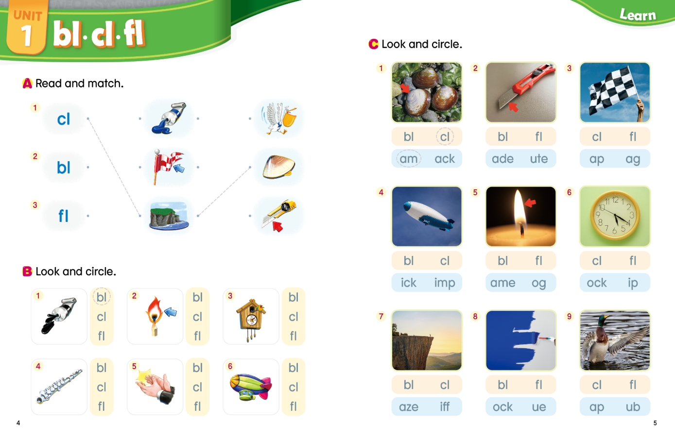 Phonics 4 page 9 #smart phonics4 unit1 bl cl fl
