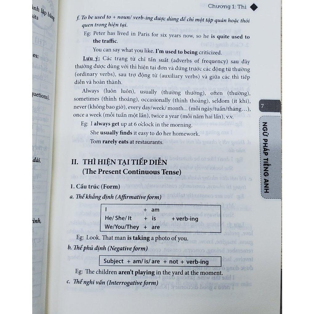 GIẢI THÍCH NGỮ PHÁP TIẾNG ANH (Ấn phẩm mới) Lighthouse Writers | Zenbooks phát hành Kích thước: 19 x 26.5 cm | Số trang: 384 trang Ấn phẩm Giải thích ngữ pháp tiếng Anh phiên bản mới được thiết kế lại toàn diện, giúp việc học ngữ pháp trở nên nhẹ nhàng, logic và thực tế hơn bao giờ hết. Sách được mở rộng khổ lớn, trình bày rõ ràng, dễ đọc và dễ ghi chú. Nội dung được sắp xếp lại theo trình tự hợp lý, từ cơ bản đến nâng cao, có sự liên kết giữa các mục để người học tiếp cận dễ dàng và ghi nhớ hiệu quả. ĐIỂM NỔI BẬT: • Trình bày dễ hiểu – logic – khoa học, phù hợp cả người mới bắt đầu và ôn luyện nâng cao • Bố cục cải tiến: Sắp xếp chủ điểm từ cơ bản → nâng cao, có liên kết mạch lạc giữa các phần • Đầu mỗi mục có: – Mục tiêu học tập – Kiến thức cần nắm vững trước khi học • Cuối mỗi mục có: – Tóm tắt kiến thức giúp ôn tập nhanh và chắc • Nhiều ví dụ thực tế, dễ nhớ • Bảng tóm tắt công thức: tra nhanh – nhớ lâu • Bài tập không quá dài, độ khó vừa phải, phù hợp người học phổ thông, sinh viên, người tự học • Có phần bài tập luyện phối hợp thì trong câu – điểm hay bị bỏ sót ở nhiều sách khác Điểm đặc biệt của sách nằm ở phần mở đầu mỗi bài học với mục tiêu học tập rõ ràng, kèm theo phần "kiến thức cần nắm" để người học biết mình cần chuẩn bị gì trước khi bắt đầu. Cuối mỗi bài đều có phần tóm tắt kiến thức ngắn gọn, giúp bạn ôn lại nhanh chóng và hệ thống hóa toàn bộ nội dung vừa học. Ngoài phần lý thuyết dễ hiểu, sách còn có nhiều ví dụ thực tế, sát đề thi, cùng với các bảng tóm tắt công thức giúp tra cứu nhanh mà không cần lật tìm nhiều trang. Bài tập đi kèm được thiết kế vừa sức, không quá dài, phù hợp cho cả người mới bắt đầu và người đang ôn luyện kiến thức cũ. Đặc biệt, sách có phần bài tập luyện phối hợp các thì – một điểm rất hay bị bỏ sót trong nhiều tài liệu khác nhưng lại cực kỳ quan trọng nếu bạn muốn thành thạo ngữ pháp toàn diện. Công cụ học ngữ pháp toàn diện cho mọi đối tượng • Học sinh, sinh viên muốn củng cố ngữ pháp nền tảng để thi tốt các kỳ thi phổ thông và học thuật • Người đi làm cần lấy lại căn bản tiếng Anh để giao tiếp hoặc làm việc