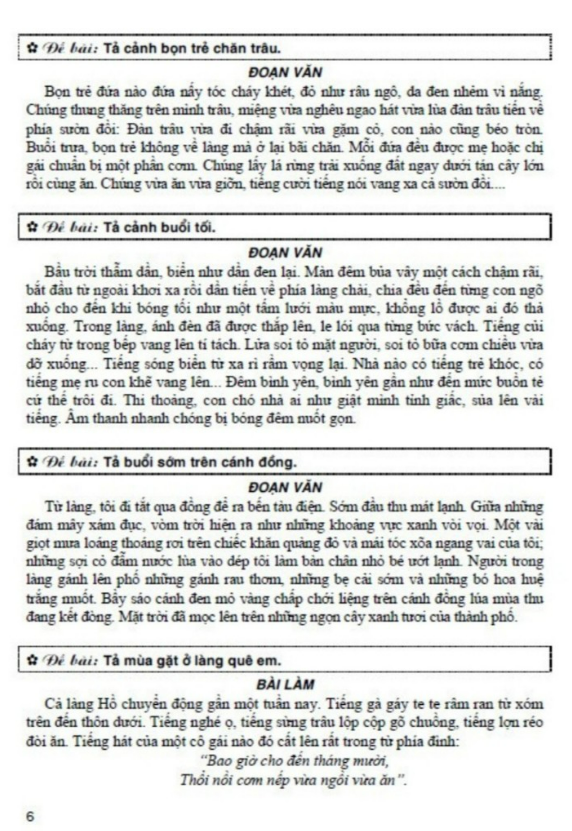 Với nội dung khá phong phú, đa dạng, tác giả hi vọng cuốn sách sẽ bổ ích đối với các em học sinh. Những bài văn trong cuốn sách này, các em nên dùng để tham khảo, không nên phụ thuộc vào các bài văn đó. Những kinh nghiệm rút ra được khi đọc các bài làm kết hợp với năng lực sáng tạo của tư duy sẽ giúp các em viết được những đoạn văn hay, làm được những bài văn đặc sắc.