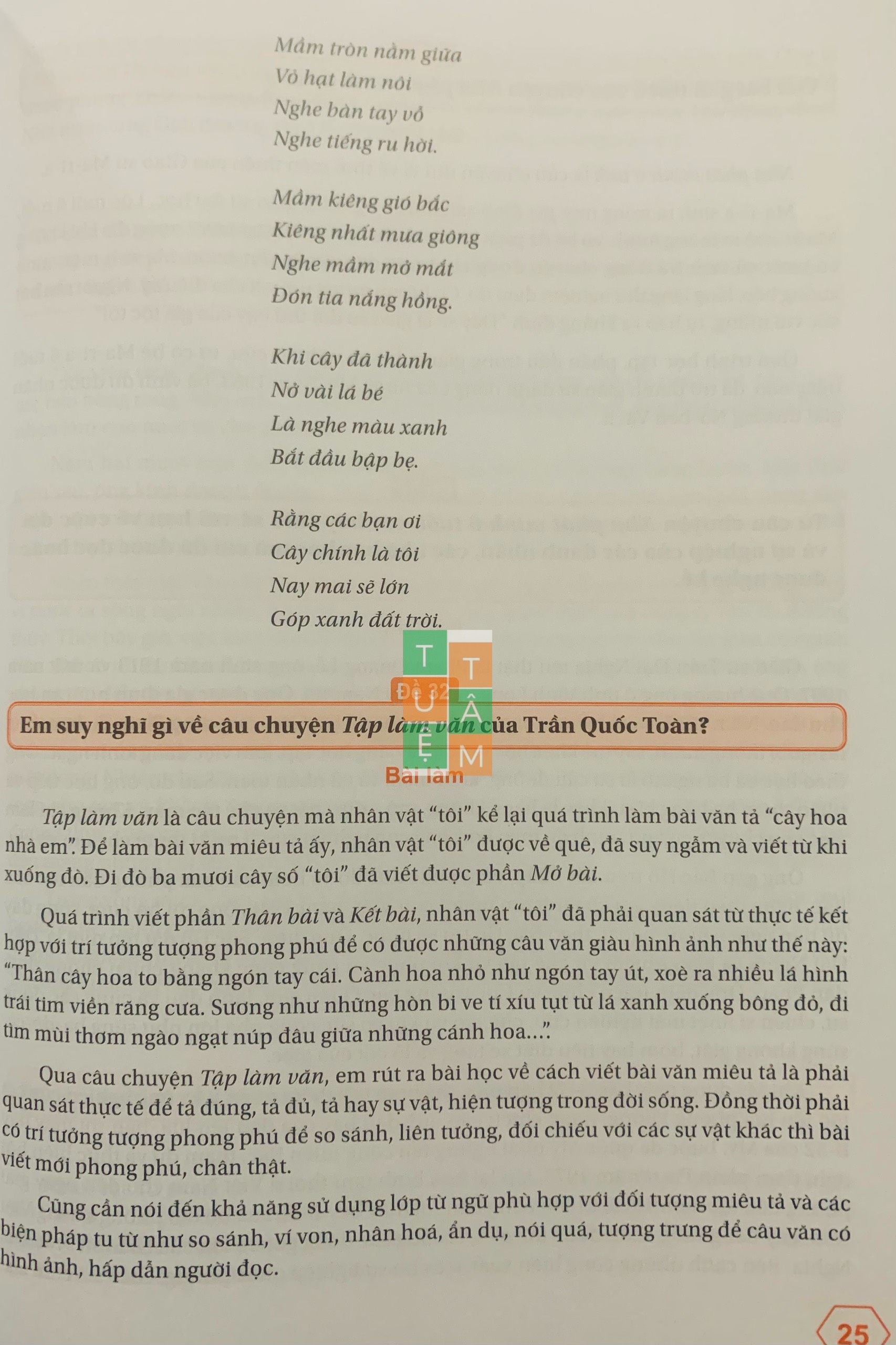 Với môn Tiếng Việt 4, các em sẽ được bổ sung một lượng kiến thức phong phú, mới mẻ và hấp dẫn. Các em cũng sẽ được làm quen những dạng bài văn như viết về những trải nghiệm của em, viết bài văn thuật lại một sự việc, viết bài văn kể lại một câu chuyện, viết bài văn tưởng tượ