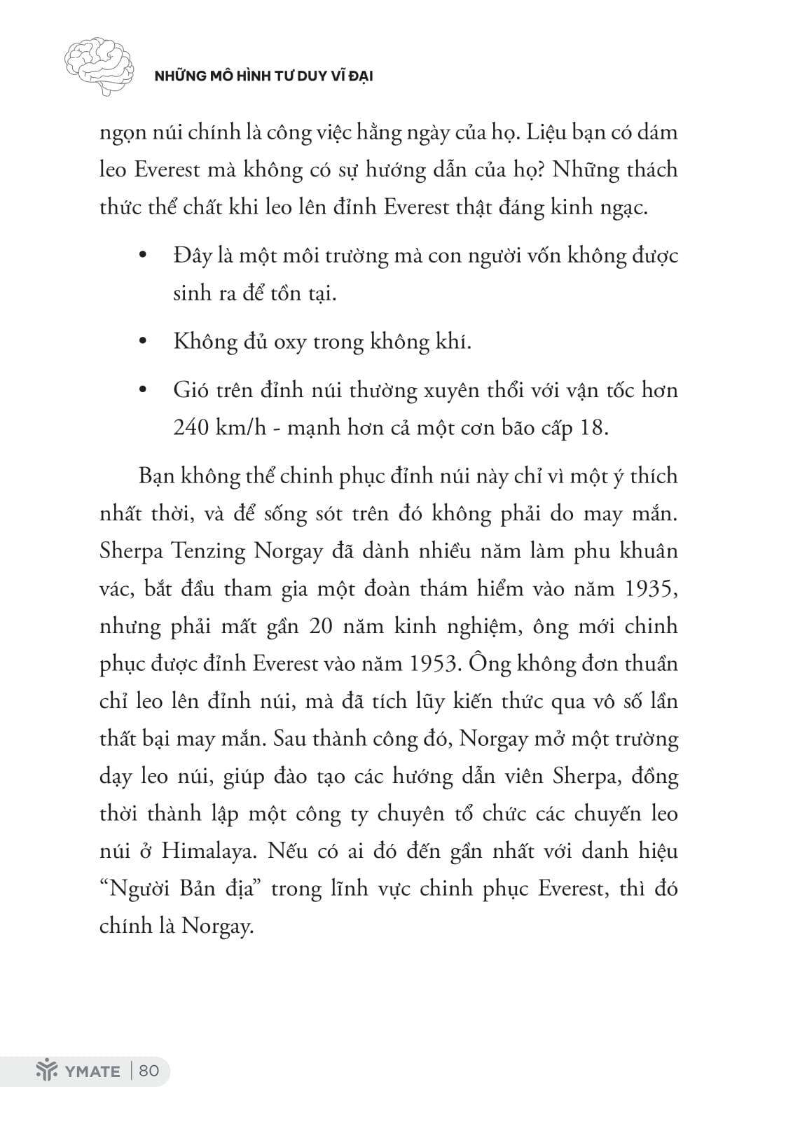 Những Mô Hình Tư Duy Vĩ Đại: Những Nguyên Tắc Tư Duy Cốt Lõi là tập 1 trong bộ sách Những mô hình tư duy vĩ đại – The Great Mental Models nổi bật của Shane Parrish và Rhiannon Beaubien được YMATE dịch, mang đến một bộ công cụ tư duy mạnh mẽ giúp bạn hiểu rõ cách thế giới vận hành. Cuốn sách giới thiệu chín mô hình tư duy nền tảng, từ Lưỡi Dao Occam đến Tư Duy Xác Suất, được trình bày dễ hiểu và minh họa bằng những câu chuyện thực tế như quyết định lịch sử của Vasili Arkhipov trong khủng hoảng tên lửa Cuba hay chiến lược vực dậy IBM của Louis Gerstner. Đây là cẩm nang lý tưởng để nâng cao khả năng ra quyết định, giảm điểm mù nhận thức và đạt được thành công bền vững trong công việc lẫn cuộc sống.