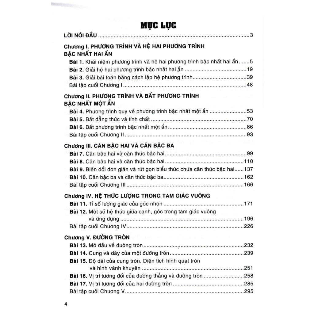 Cuốn sách được biên soạn dành cho đại đa số các em học sinh, nhưng còn có khoảng 30% số bài tập để các em khá, giỏi và những em học sinh muốn nâng cao kiến thức của mình. Ngoài việc phục vụ cho các em học sinh lớp 9, cuốn sách còn có thể là tài liệu hữu ích cho các thầy cô giáo và các bậc phụ huynh giúp con em học tập Toán 9 tốt hơn.