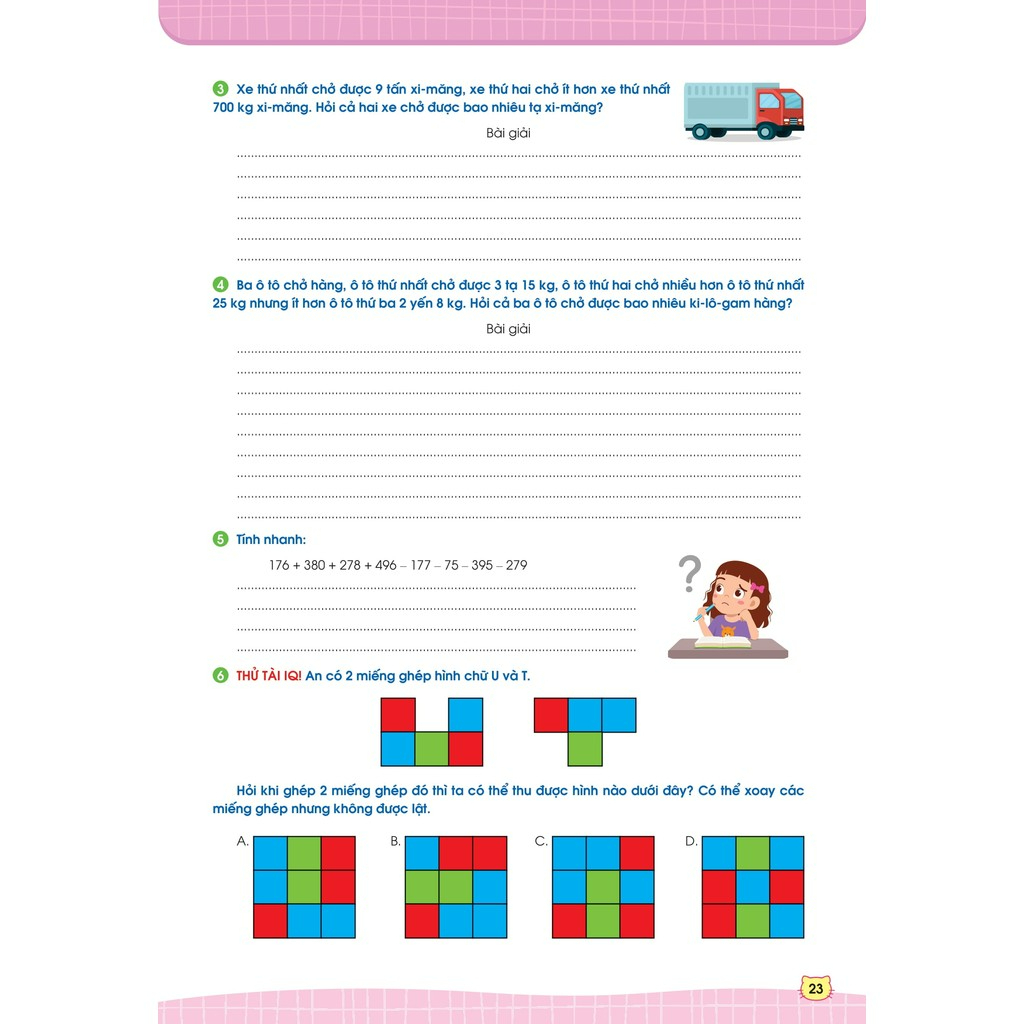Phiếu Bài Tập Cuối Tuần Toán 4 Cuối tuần không chỉ để nghỉ ngơi mà còn là thời gian thích hợp để các con ôn tập lại kiến thức đã được học ở trường. Với mong muốn giúp các con nắm vững kiến thức trên lớp trong 35 tuần học, chúng tôi đã biên soạn bộ sách Phiếu bài tập cuối tuần dành riêng cho học sinh tiểu học từ lớp 1 đến lớp 5 với bộ 3 cuốn: Phiếu bài tập Toán, Phiếu bài tập Tiếng Việt, Phiếu bài tập Tiếng Anh. Bộ sách gồm các bài luyện tập chia theo tuần, ôn tập tổng quát kiến thức của 35 tuần học. Ngoài ra, cuốn sách cũng cung cấp các bài kiểm tra giữa kỳ và cuối kỳ để các con trau dồi thêm, tự tin chinh phục điểm cao trong các bài kiểm tra trên lớp. ƯU ĐIỂM CỦA CUỐN SÁCH PHIẾU BÀI TẬP CUỐI TUẦN TOÁN 4: 1. Nội dung bám sát chương trình sách giáo khoa Cuốn sách bám sát chương trình sách giáo khoa mới của Bộ Giáo dục và Đào tạo giúp con...