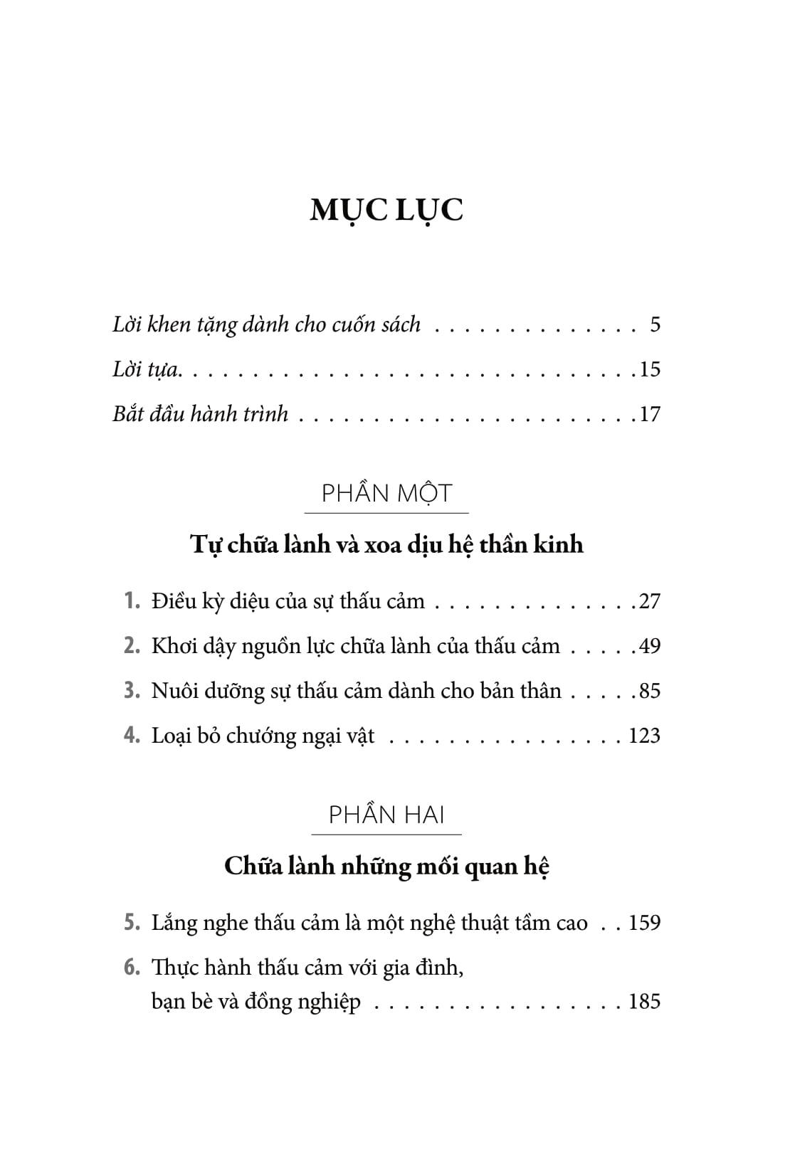 Cuốn sách mở ra một hành trình ba bước: thấu cảm với chính m.ình, với người khác và với thế giới – với nhiều chiến lược cụ thể, bài tập thực hành và chia sẻ cá nhân chân thật.