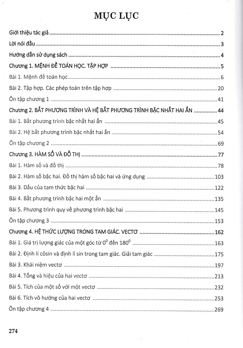 Tập 2 gồm các chương: Chương VI: Hàm số, đồ thị và ứng dụng Chương VII: Phương pháp tọa độ trong mặt phẳng Chương VIII: Đại số tổ hợp Chương IX: Tính xác suất theo