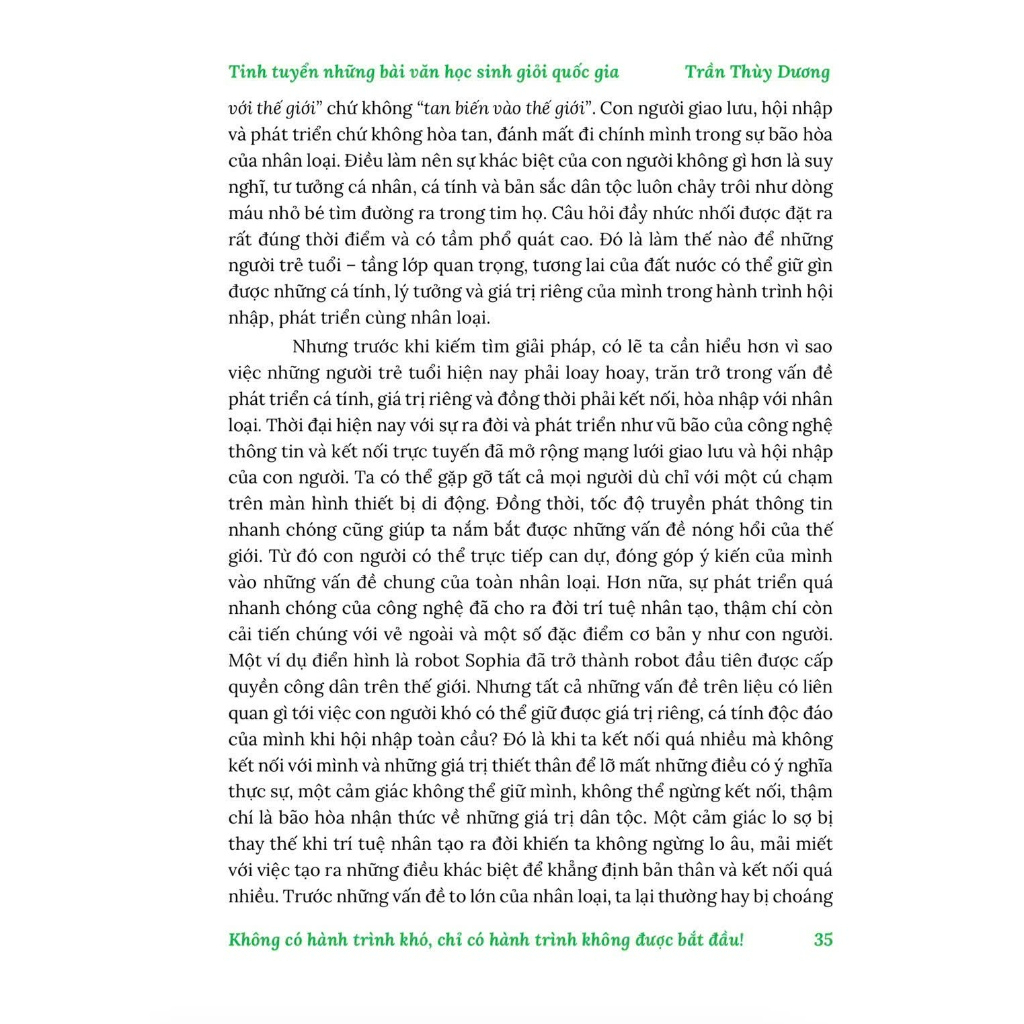 Sách Tinh tuyển Những bài văn Học sinh giỏi Quốc gia 2025 Cuốn sách này là bộ sưu tập 50 bài văn xuất sắc của các thí sinh đạt giải Nhất, Nhì trong kỳ thi Học sinh giỏi Quốc gia năm 2025. Sách được chia thành hai phần, cung cấp một nguồn tài liệu tham khảo chất lượng cao, giúp người học nâng cao tư duy và kỹ năng viết văn. Điểm nổi bật của cuốn sách Phần 1: Nghị luận xã hội (25 bài)