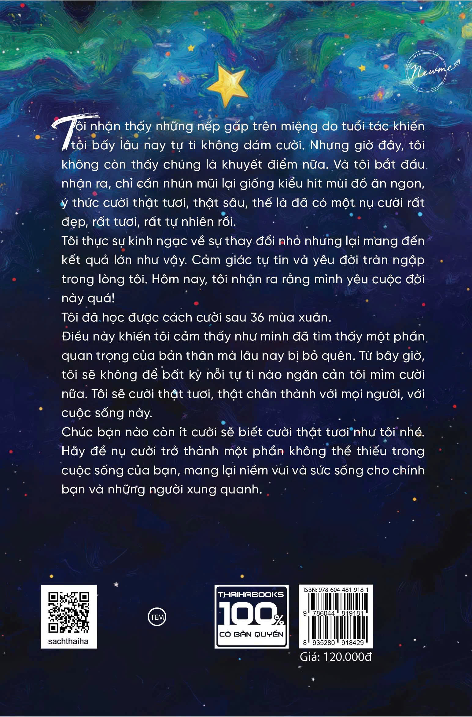 Tác giả Mạc Thảo từng không thể cười bởi những điều trên, từng không muốn cười do e ngại những nếp nhăn nơi khóe miệng. Nhưng rồi nhận ra rằng thay vì trốn tránh tất thảy, né tránh những câu chuyện mà cuộc đời đang kể về mình thì cô lựa chọn đứng ra ngoài ánh sáng, đối diện và yêu thương bản thân mình – “Tôi đã học được cách cười sau 36 mùa xuân. Điều này khiến tôi cảm thấy như mình đã tìm thấy một phần quan trọng của bản thân mà lâu nay bị bỏ quên.”. Sức mạnh của nụ cười rất kỳ diệu. Khi ta mỉm cười với mọi người, họ cũng đáp lại bằng những nụ cười chân thành. Điều này tạo nên một vòng tích cực, làm cho cuộc sống trở nên dễ chịu và hạnh phúc hơn – “Nụ cười đã trở thành vũ khí mạnh mẽ giúp tôi vượt qua những thời khắc khó khăn nhất. Nó không chỉ giúp tôi tự tin hơn mà còn giúp tôi nhìn nhận mọi việc dưới góc nhìn tích cực hơn.”