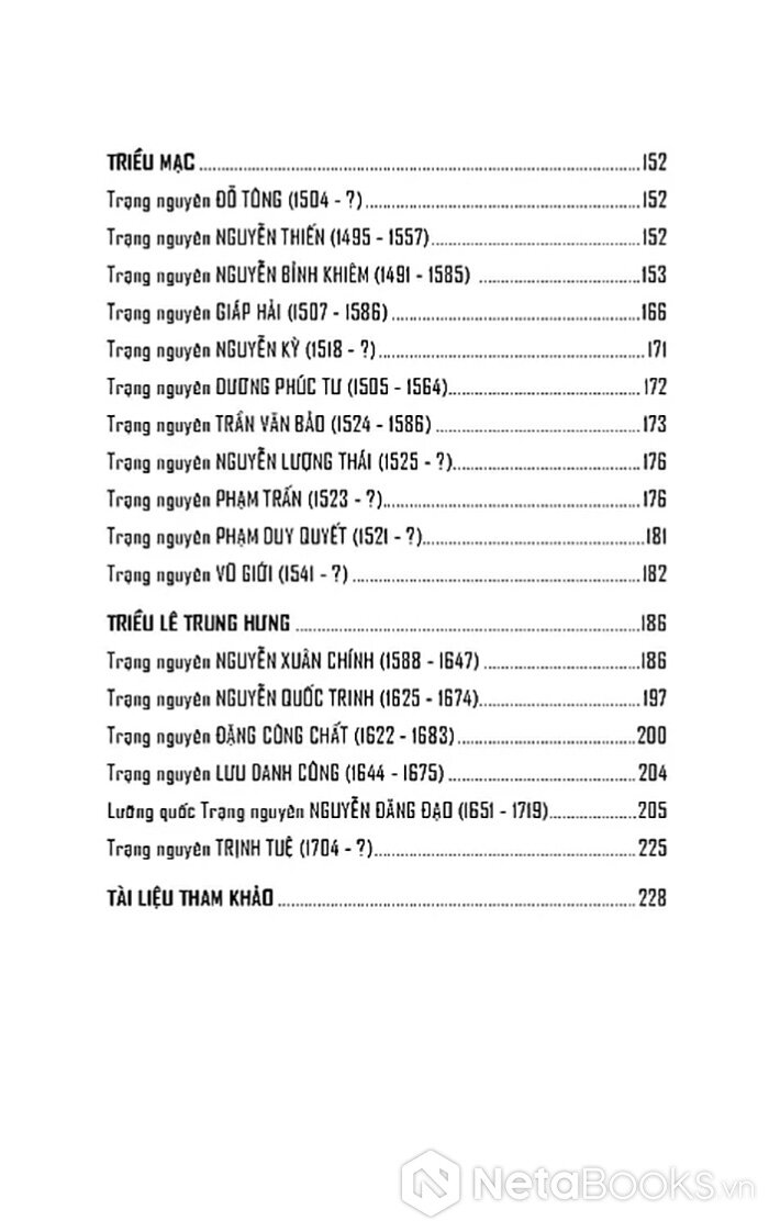 Tác giả: Nhiều tác giả Ngôn ngữ: tiếng Việt Số trang: 232 Năm xuất bản: 2024 Nhà xuất bản: Hà Nội Kích thước: 13 x 20 m Hình thức: bìa mềm Cuốn sách Trạng nguyên Việt Nam đem đến cho bạn đọc câu chuyện về những học trò nghèo nỗ lực học hành để đổ đạt như Trạng nguyên Nguyễn Nghiêu Tư, Nguyễn Trực,... Chuyện về Trạng nguyên Nguyễn Hiền tiêu biểu cho những người trẻ tuổi trong lịch sử Việt Nam có tài cao, danh vọng lớn, đổ trạng ở tuổi 13. Chuyện về thiên tài toán học Lương Thế Vinh với Khải minh toán học và Đại thành toán pháp; Trạng nguyên Trần Tất Văn viết văn đuổi được giặc; Trạng nguyên Nguyễn Bỉnh Khiêm với những giai thoại sấm Trạng Trình...