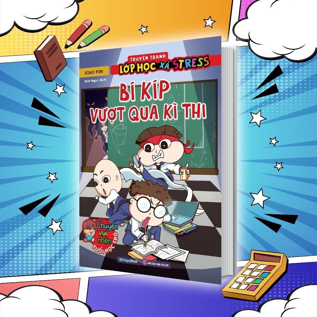 Bộ truyện tranh gồm 4 cuốn: - Truyện tranh lớp học xả stress - Bí kíp vượt qua kỳ thi - Truyện tranh lớp học xả stress - Cánh cổng xuyên không gian - Truyện
