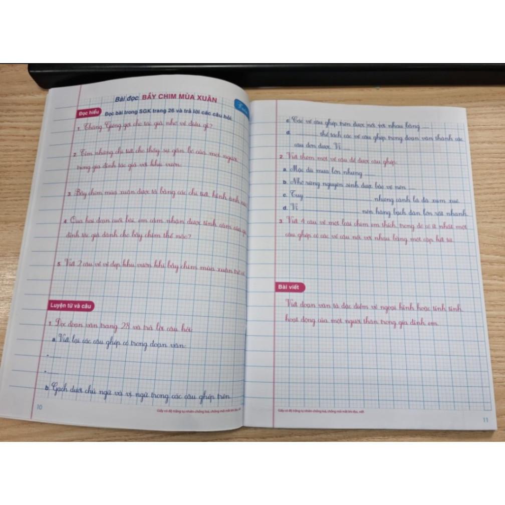 tVới 2 bài học, mỗi tuần gồm các câu hỏi và bài tập được trình bày trên giấy ô li bằng kiểu chữ tiểu học hiện hành sẽ giúp các em vừa rèn được kĩ năng trả lời câu hỏi vừa rèn viết chữ được sạch, đẹp, trình bày rõ ràng.