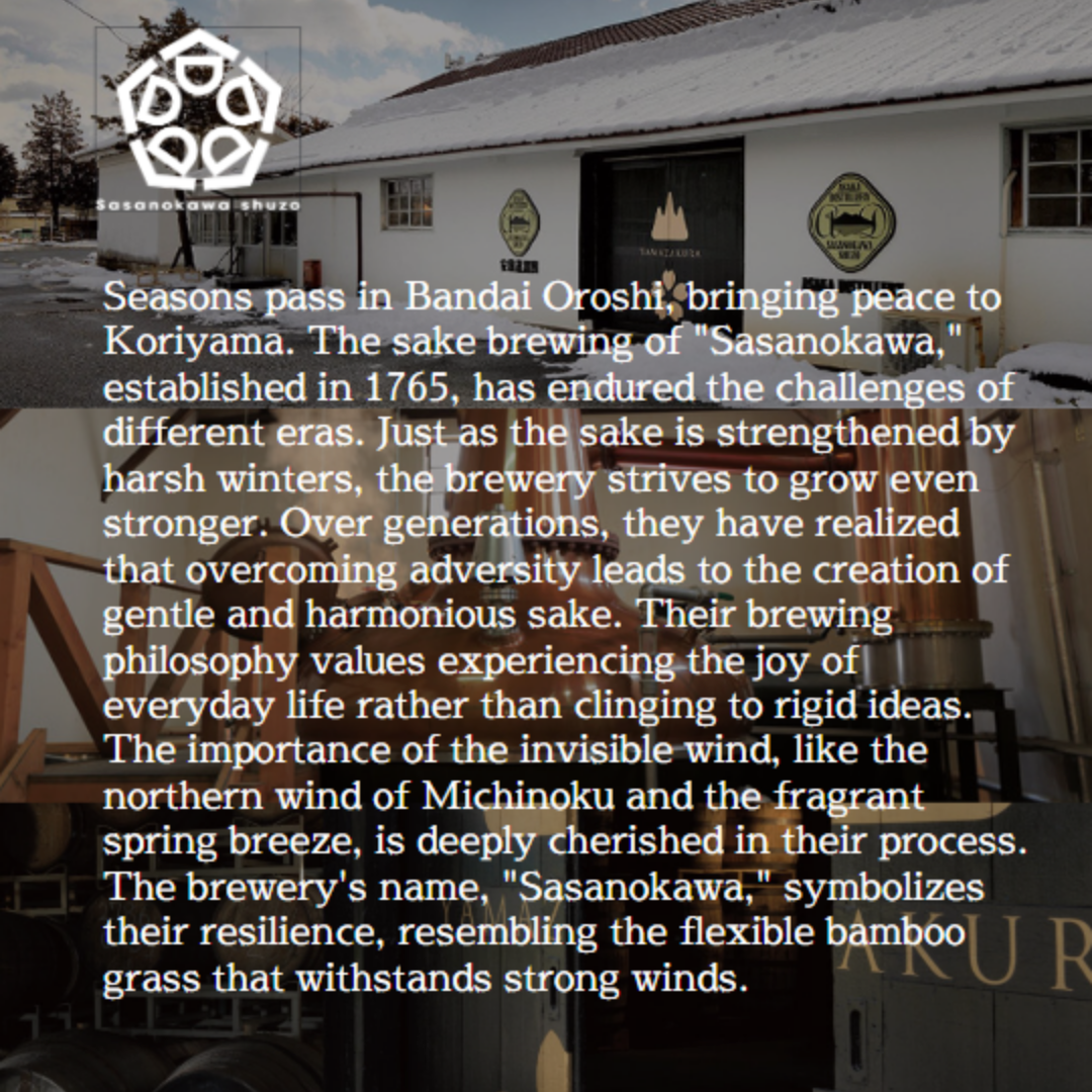 Rượu Sake Nguyên Chất Sasanokawa Ginjo R'ượu ginjo-shu này được ủ cẩn thận với loại men được sử dụng từ loại gạo nguyên thủy của tỉnh Fukushima phù hợp để ủ r'ượu sake "Yume no