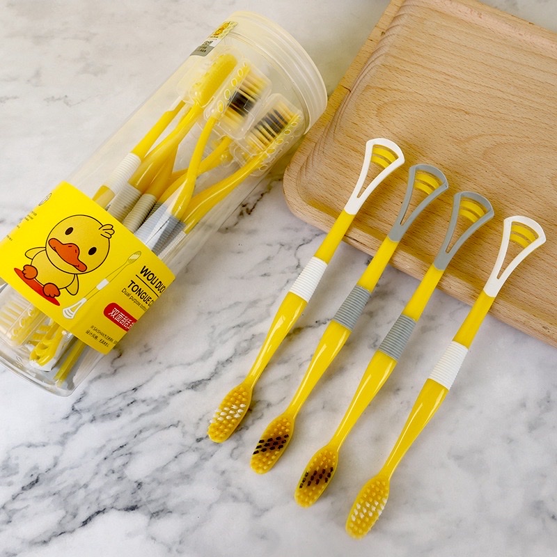 -Sản phẩm dụng cụ vệ sinh -Hộp 8 cây bàn chải cho bé 2 in 1 kèm dụng cụ cạo lưỡi ,cán cầm chống trượt ,lông bàn chải sợi tơ siêu mềm , giúp chải răng sạch hơn , giảm vi khuẩn gây sâu răng và hôi miệng an toàn và tiện lợi
