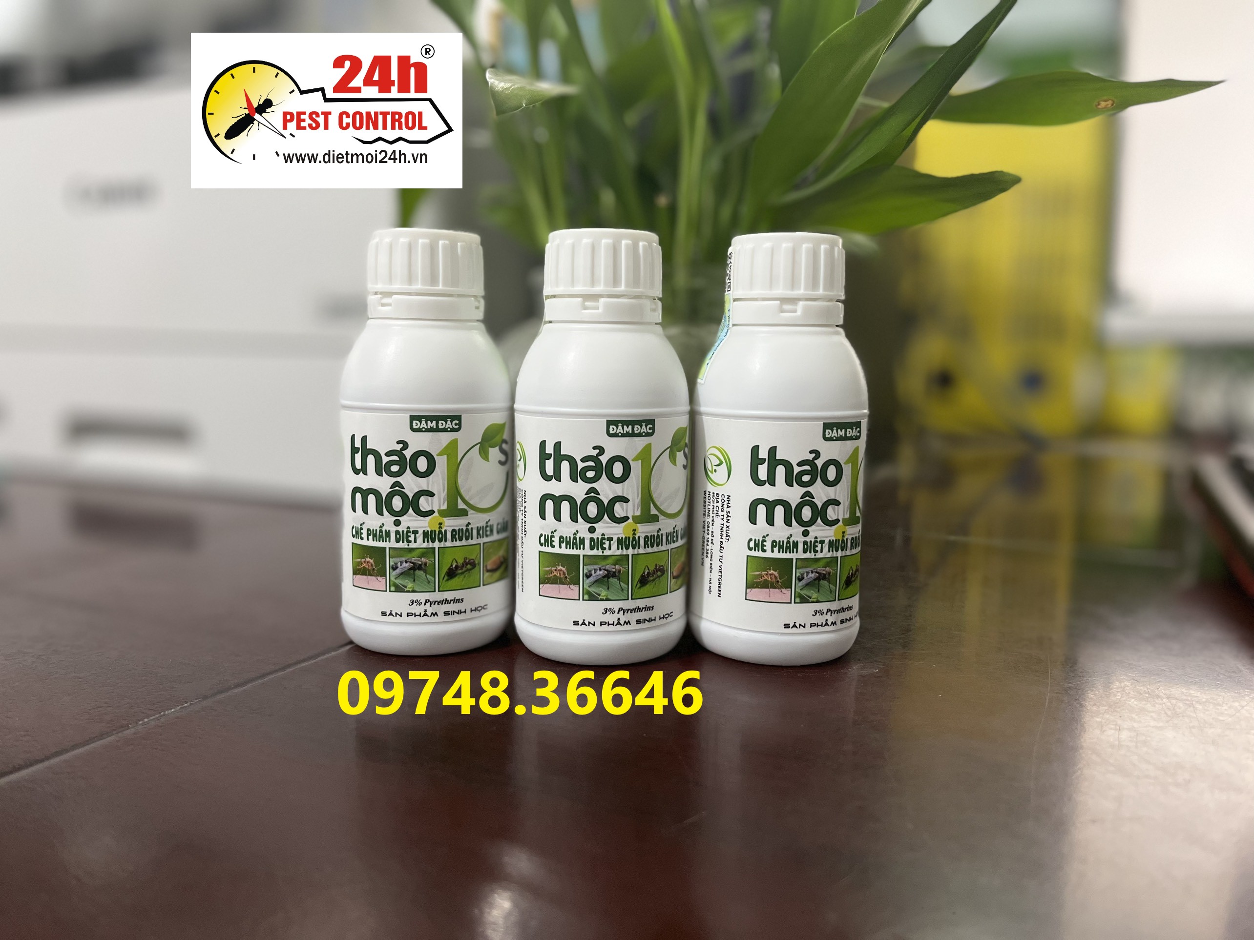 ( SẢN PHẨM SINH HỌC) Thảo mộc 10S đậm đặc 100ml - Chế phẩm diệt Ruồi - Muỗi - Kiến - Gián - An Toàn , hiệu quả cao Thảo mộc 10s đậm đặc là chế phẩm sin học diệt côn trùng phổ rộng dùng cho các khu vực ngoài trời, diện rộng như: Sân vườn, bệnh viện, trường học, nhà hàng, khách sạn, resort, nhà vườn, trang trại trồng trọt, chăn nuô Thảo mộc 10S đậm đặc có thể diệt dầu hết các loại côn trùng gây hại như: Muỗi, ruồi, kiến, gián, mối, mọt, ve, rận, bọ chó, bọ chét, ruồi vàng, bọ xít, bọ cánh cứng, rệp, rầy, nhện đỏ, bọ trĩ, sâu xanh, sâu đục thân, sâu cuốn lá, sâu ró Thảo mộc 10S đậm đặc là giải pháp tối ưu cho những khu vực có các yêu cầu nghiêm ngặt về mức độ an toàn cho con người, vật nuôi, cây trồng và môi trường sinh thái.