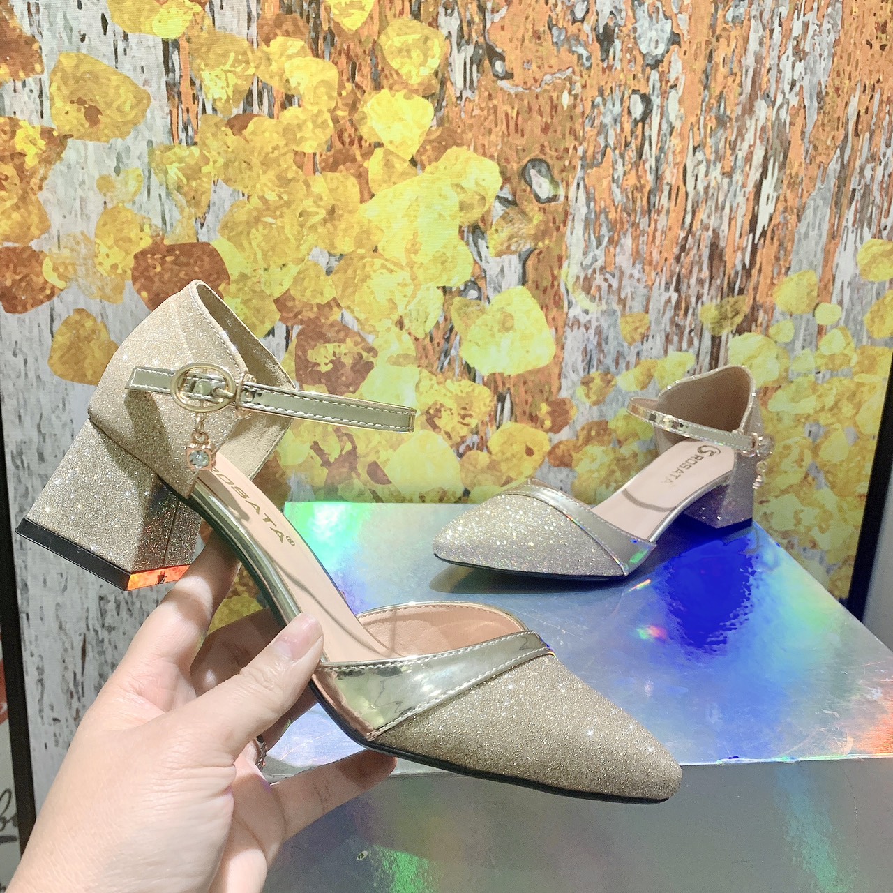 MÔ TẢ SẢN PHẨM: Sandal nữ phối kim tuyến sang trọng ROSATA RO552 cao 4p - Đồng, Bạc - HÀNG VIỆT NAM - BKSTORE