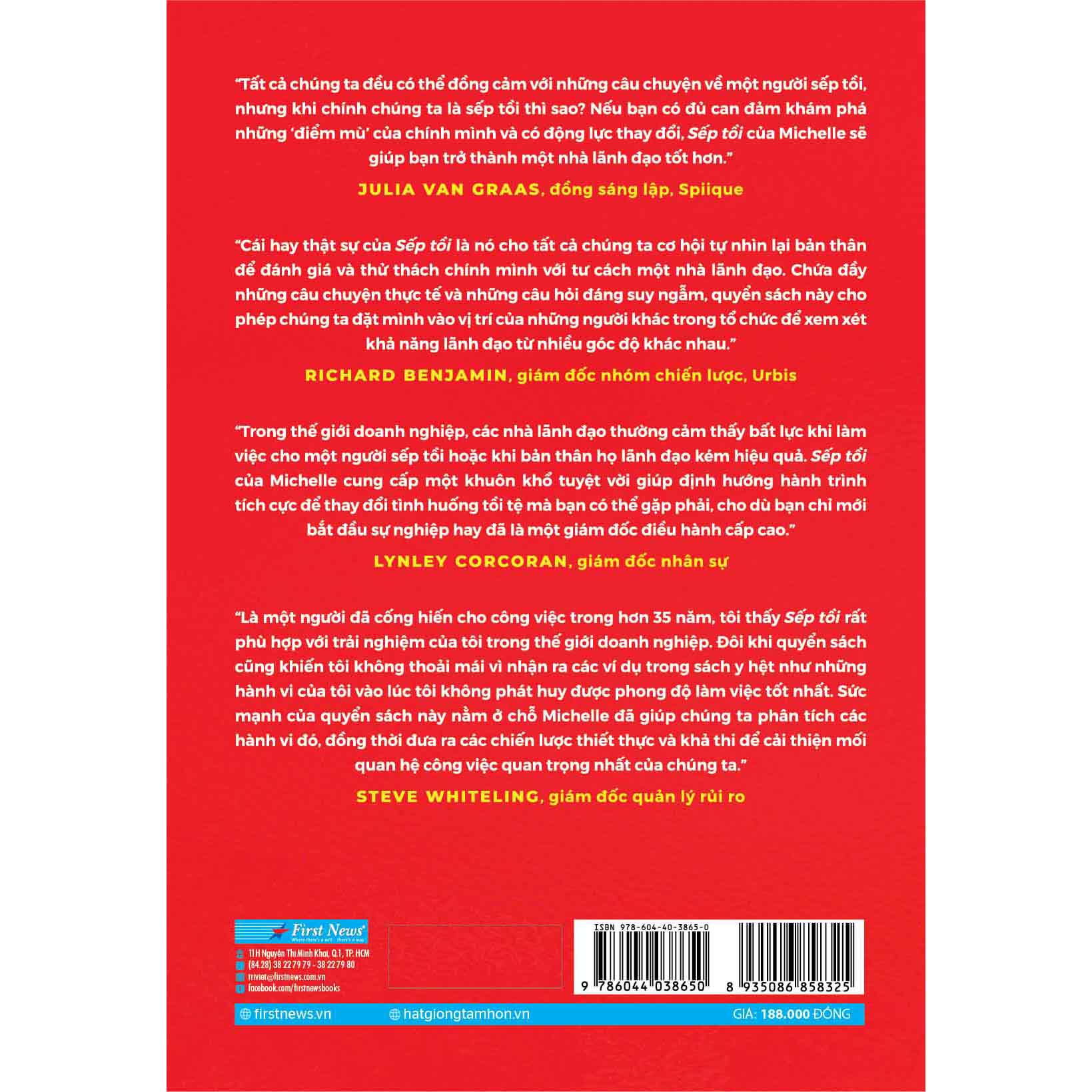 Vậy phải làm gì nếu bạn đang khổ sở và kiệt sức dưới trướng của một người sếp tồi, đang phải quản lý sếp tồi, hay chính bạn là sếp tồi? Tác giả Michelle Gibbings có hàng thập kỷ lãnh đạo và làm việc với hàng trăm thành viên đội nhóm ở nhiều lĩnh vực khác nhau, và hiển nhiên, cô từng chứng kiến và kinh qua cả ba trường hợp trên. Với mong muốn hướng đến một thế giới công sở hạnh phúc hơn, Michelle Gibbings đã góp nhặt và chia sẻ những hiểu biết xương máu của mình trong cuốn sách “Sếp tồi” (tựa gốc: Bad Boss).