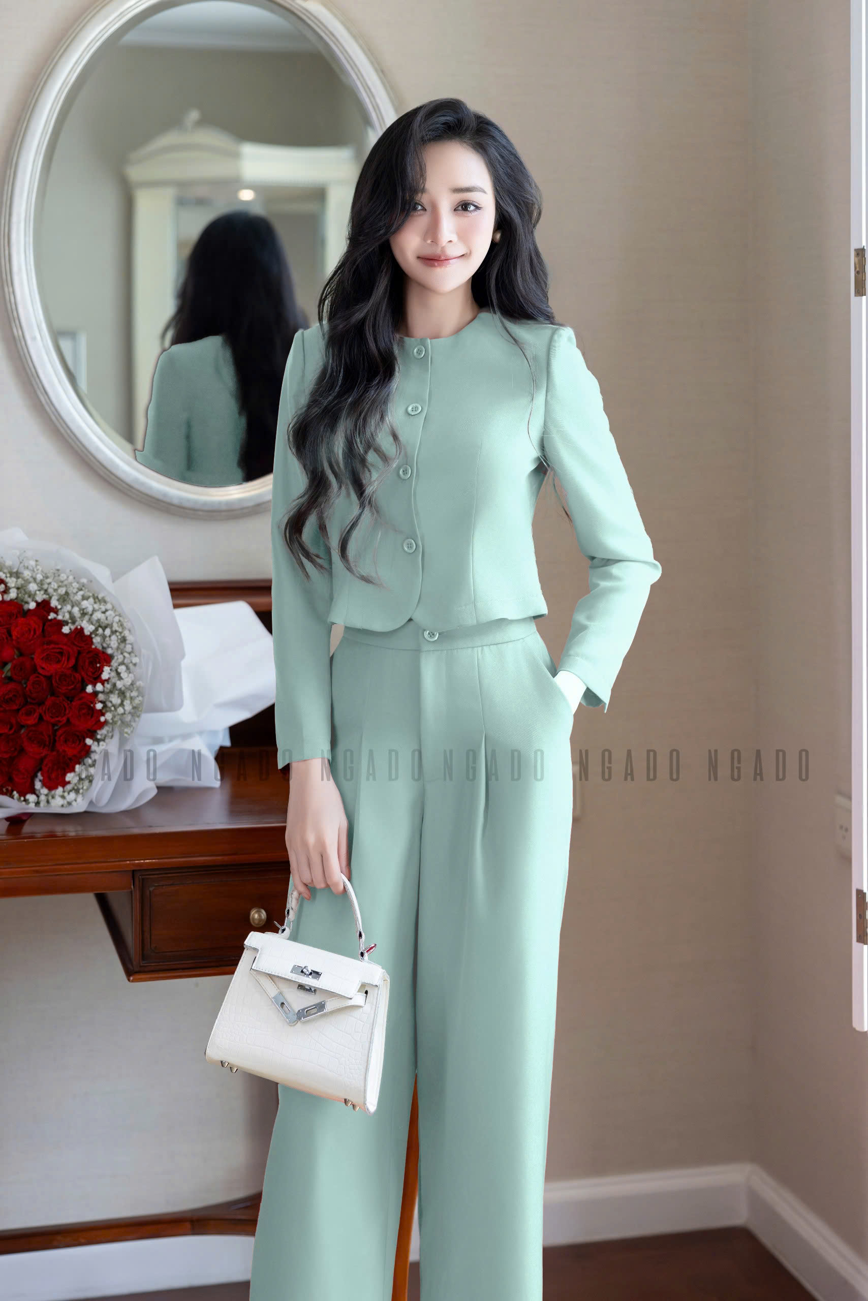 ✨Set áo quần xanh mint cổ tròn NGADO , set áo quần dài , set công sở , dạo phố