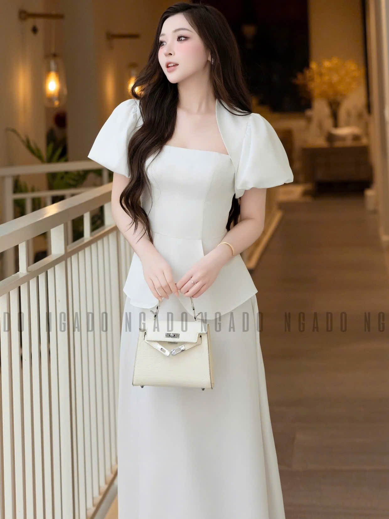 ✨Set áo váy trắng tay phồng NGADO , set áo váy dài , set áo váy công sở , dự tiệc
