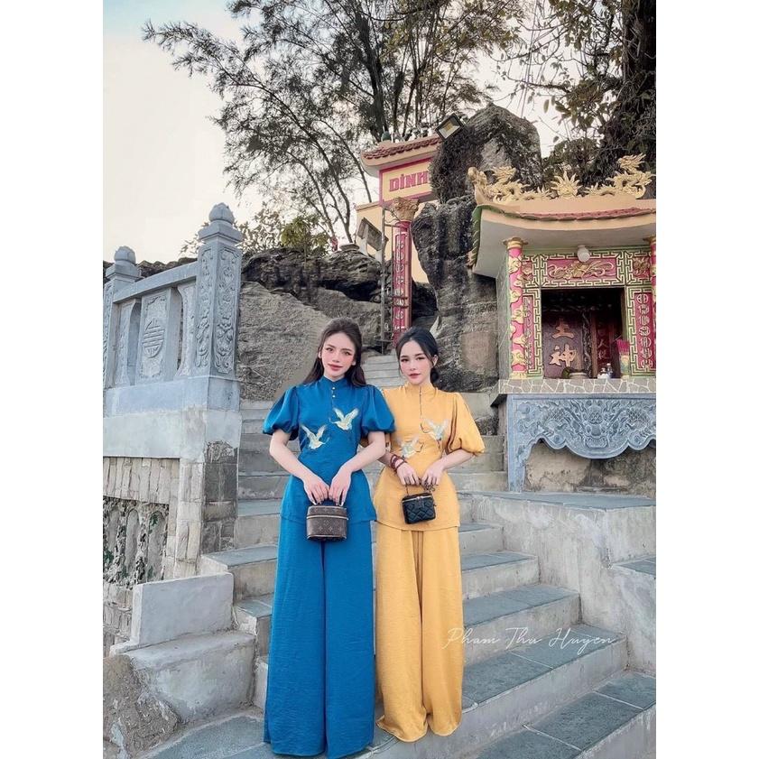 ✨Set đồ lam đi chùa cách tân thêu tay phồng có đính hạt