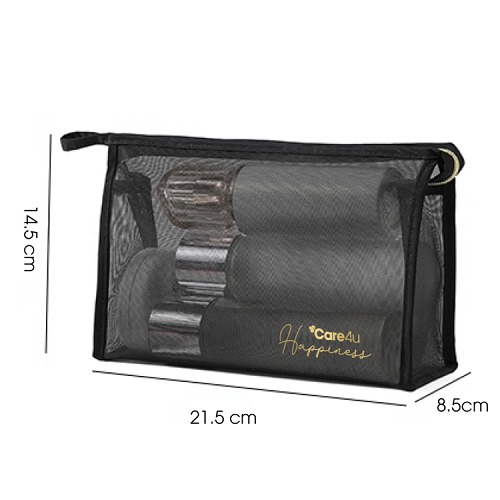 Túi đựng mỹ phẩm cao cấp Care4u được thiết kế sang trọng, thanh lịch với dạng túi lưới thoáng khí siêu nhẹ, giúp bạn thuận tiện quan sát những đồ dùng bên trong túi.
