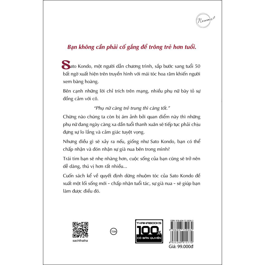 Thông qua sự quyết đoán, không chút giấu giếm về mái tóc bạc của Kondou Sato, cuốn sách này gợi ý cho chúng ta cách sống mới “Loại bỏ để trẻ hơn tuổi”. Đây là cuốn cẩm nang đưa ra lời kêu gọi chúng ta không nên phủ nhận tuổi già mà hãy đón nhận nó và sống một cuộc đời khỏe khoắn, yên vui.
