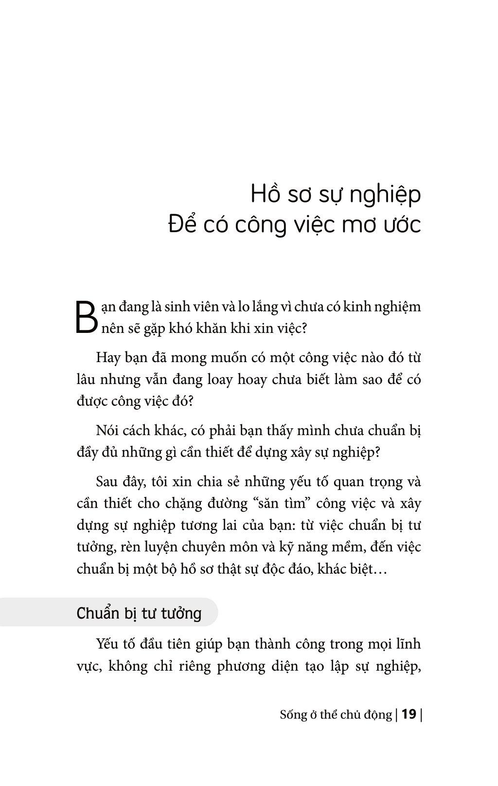 Cuốn sách này phản ánh suy nghĩ, những trăn trở, chia sẻ của tác giả với thế hệ trẻ thông qua những chuyến đi thú vị đến các nước trên thế giới và công việc kinh doanh mà tác giả yêu thích. Với tác giả, hành trình cuộc đời của con người chính là khám phá những năng lực và khả năng của bản thân. Sống ở thể chủ động sẽ giúp bạn nhận ra, khi bạn có những ước mơ cháy bỏng, chúng sẽ thôi thúc bạn hăm hở bắt tay thực hiện, bạn sẽ tạo ra được một cuộc sống thú vị và có giá trị.