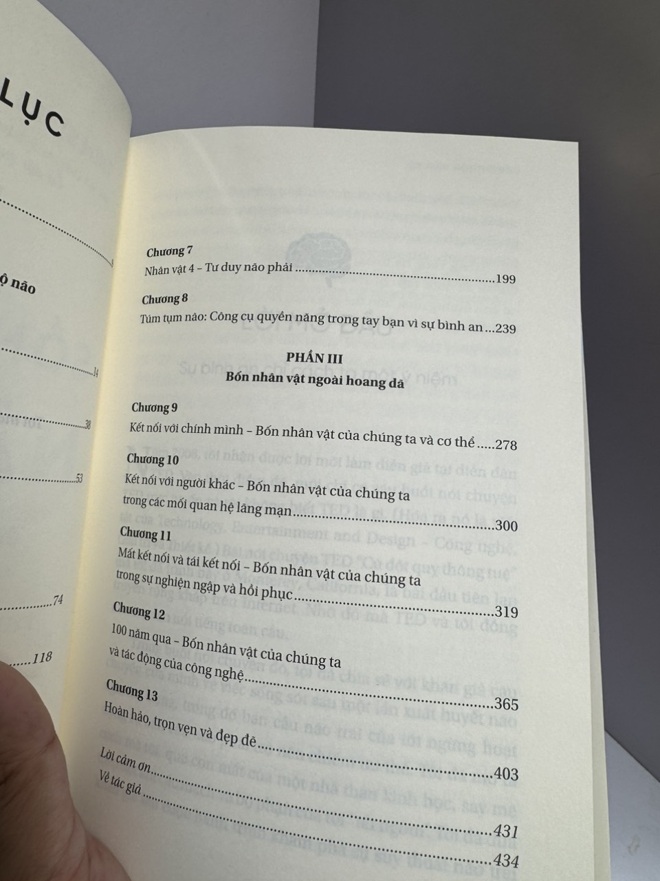 Trong cuốn sách gồm 13 chương này, tiến sĩ Taylor chia nội dung làm 3 phần: Phần I – Cú liếc vào bên trong bộ não, Phần II – Bốn nhân vật của bạn và Phần III – Bốn nhân vật ngoài hoang dã.