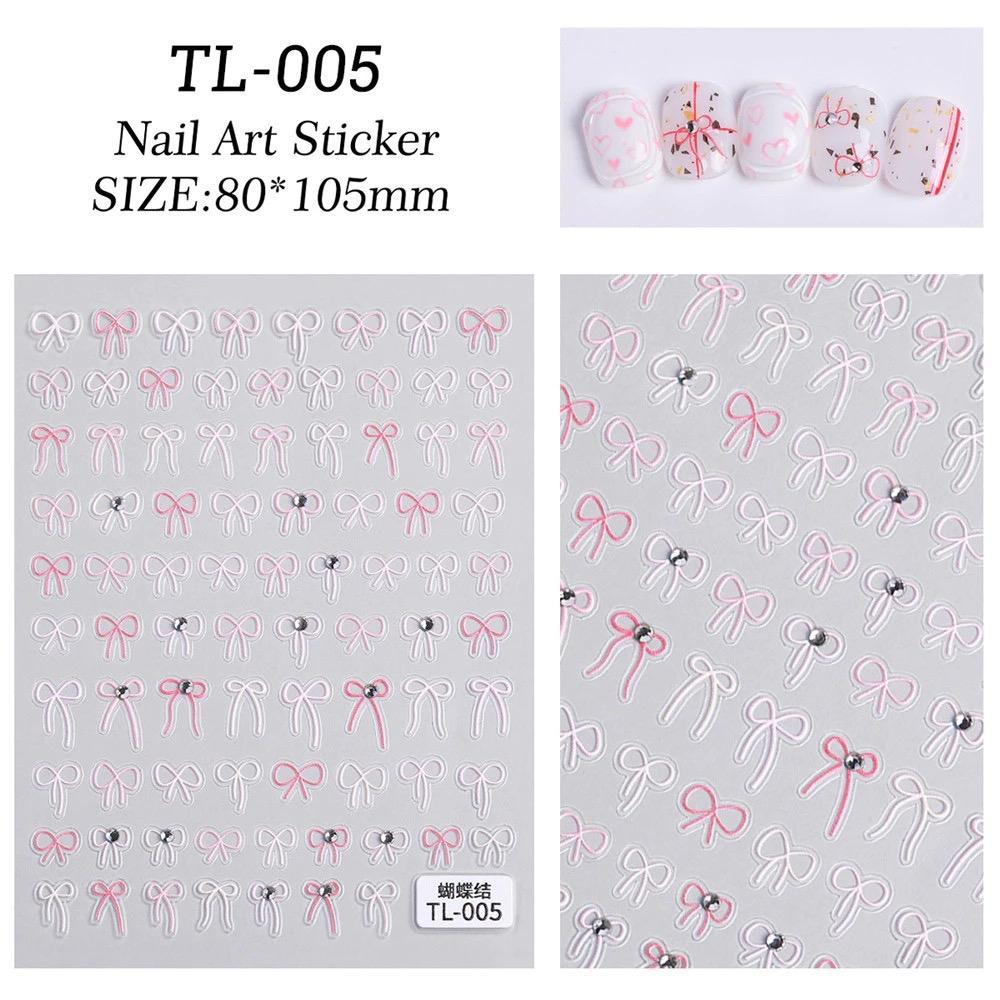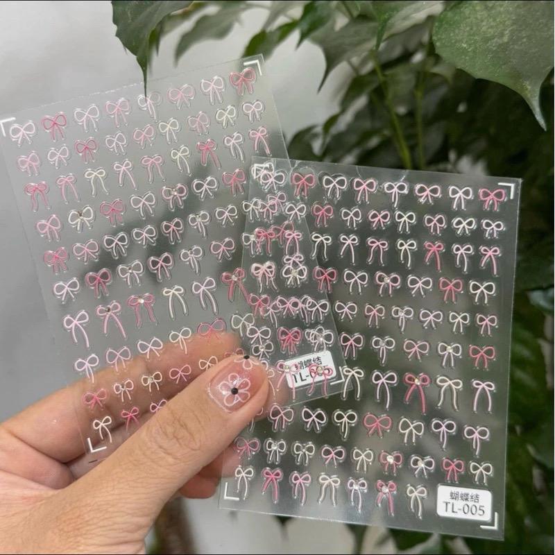 ✨Sticker 5D Lụa Nổi Hình Dây Nơ Mảnh Mix Màu Trắng Hồng dán nail Cao Cấp TL004 Đính Đá Trang Trí Móng Siêu Dễ Thương Phong Cách Hàn Quốc Nữ Women