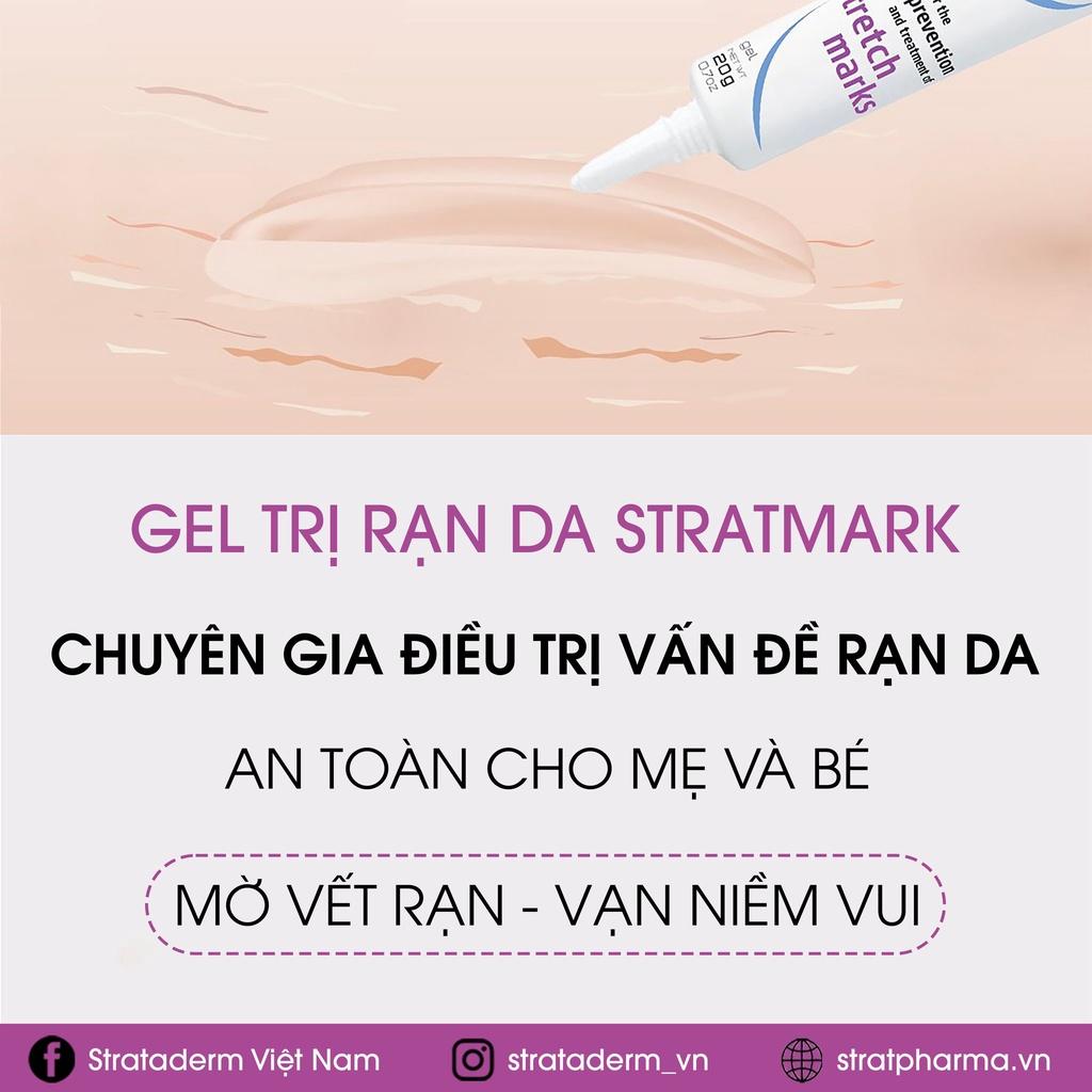 Gel Silicone làm giảm và ngăn ngừa rạn da STRATAMARK 50G Hãy tận hưởng thiên chức làm mẹ, làn da không vết rạn là nhiệm vụ của chúng tôi Cơ chế tác dụng Không màu – Không mùi – Không chứa cồn – Không chứa Paraben (chất bảo quản) Thời gian khuyên dùng: Stratamark được khuyến cáo sử dụng từ tuần thứ 13 của thai kỳ hoặc ngay sau khi có dấu hiệu rạn da. Nên sử dụng liên tục sau khi sinh 60 đến 90 ngày. StratPharma - Chuyên gia hàng đầu về ngăn ngừa và ngăn ngừa sẹo bất thường (bao gồm cả rạn da) Có mặt hơn 38 quốc gia ở Châu Âu, Bắc Mỹ và Châu Á.